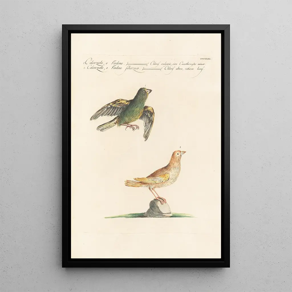 De kunstdruk van Ornithologia methodice digesta Pl313 dompelt ons onder in een fascinerende wereld waar de fijnheid van vogels wordt benadrukt. De levendige kleuren en de minutieuze details van de verenkleed creëren een levendige en dynamische sfeer. Elke vogel wordt afgebeeld met een precisie die getuigt van de aandachtige observatie van de kunstenaar. De gebruikte techniek, waarschijnlijk aquarel of graveerwerk, stelt ons in staat de lichtheid en gratie van deze gevleugelde wezens vast te leggen, terwijl het een visuele diepte biedt die de blik trekt. Dit schilderij nodigt uit tot contemplatie en verwondering over de schoonheid van de natuur.