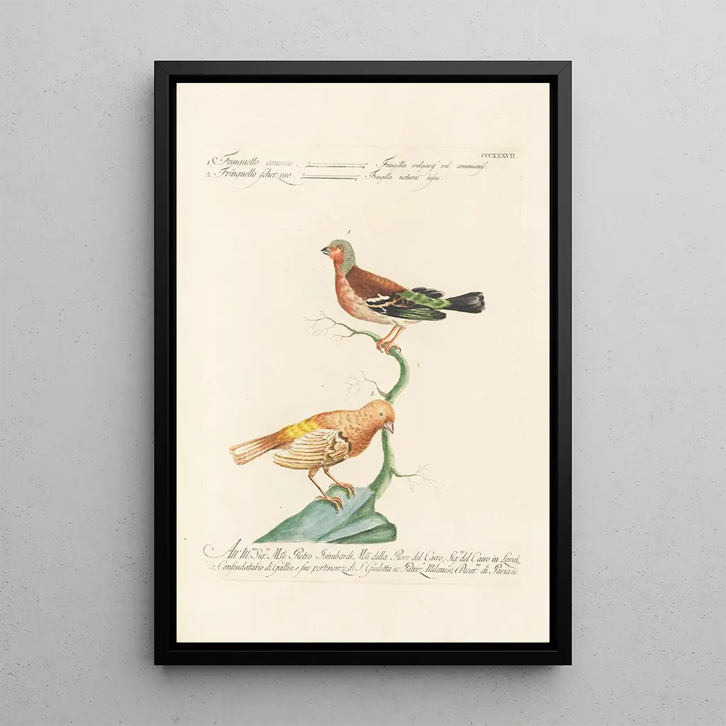 De kunstdruk van Ornithologia methodice digesta Pl319 dompelt ons onder in een fascinerende wereld waar de natuur zich uitdrukt door middel van minutieuze details. De levendige kleuren van de verenkleed, variërend van heldere tinten tot zachtere nuances, worden met opmerkelijke precisie weergegeven. De graveertechniek die door Saverio Manetti wordt gebruikt, maakt het mogelijk niet alleen de uitstraling van de vogels vast te leggen, maar ook hun essentie, waardoor een levendige en meeslepende sfeer ontstaat. Elke vogel lijkt tot leven te komen op het doek, en nodigt de kijker uit om de wonderen van de vogelwereld met verwondering te verkennen.