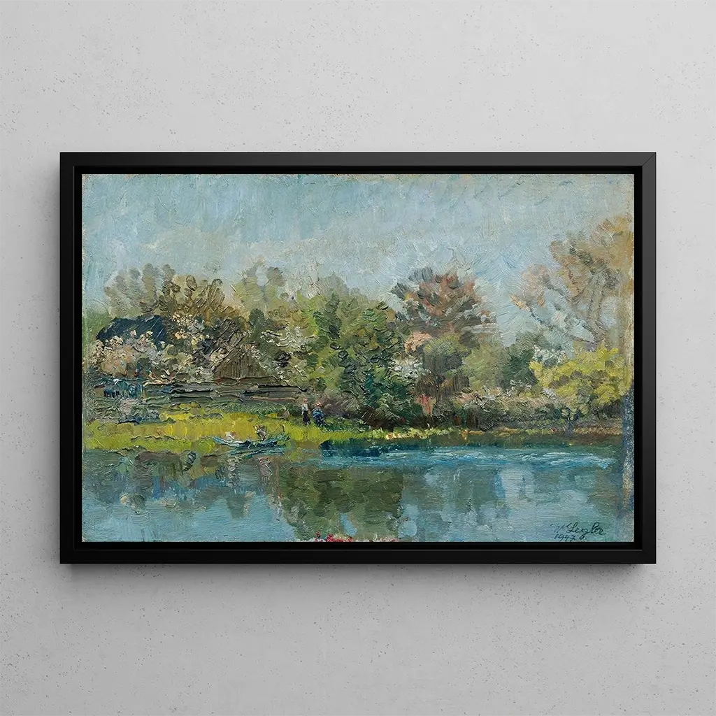 Vieille Danube : een melodie van licht en water De kunstdruk Vieille Danube van Wilhelm Legler roept een idyllisch tafereel op waarin de natuur en het water samenkomen in perfecte harmonie. De fonkelende reflecties op het oppervlak van de rivier, de groentinten van de bomen en de blauwe lucht bezaaid met wolken creëren een rustige en sereuze sfeer. De techniek van Legler, gekenmerkt door delicate penseelstreken en een palet van zachte kleuren, nodigt de kijker uit om onder te dompelen in dit idyllische landschap. Elk detail, van de beweging van het water tot de schaduwen van de bladeren, draagt bij aan een evenwichtige compositie en biedt een ware uitnodiging tot contemplatie. Wilhelm Legler: een meester van het impressionistische landschap Wilhelm Legler, actief aan het einde van de 19e eeuw, wordt vaak geassocieerd met de impressionistische beweging, die de schilderkunst revolutioneerde door de nadruk te leggen op licht en kleur. Geïnspireerd door kunstenaars zoals Monet en Renoir, wist Legler de essentie van Europese landschappen vast te leggen met een unieke gevoeligheid. Zijn carrière, hoewel minder bekend dan die van zijn tijdgenoten, heeft een blijvende indruk achtergelaten in de kunstwereld. Zijn werken, waaronder de kunstdruk Vieille Danube, getuigen van een tijd waarin de natuur werd gevierd als een nobel onderwerp, en reflecteren de esthetische en emotionele zorgen van zijn tijd. Een decoratief stuk met vele voordelen De kunstdruk van het schilderij Vieille Danube is een ideale keuze om je interieur te verfraaien, of het nu in een woonkamer, kantoor of slaapkamer is. De afdrukkwaliteit garandeert een opmerkelijke trouw aan de kleuren en details van het originele werk, en brengt een vleugje sereniteit en natuur in je ruimte. Met zijn esthetische aantrekkingskracht zal dit doek je gasten aanspreken en een warme sfeer creëren. Door dit kunstwerk in je decoratie te integreren, geef je je omgeving een artistieke en poëtische dimensie, terwijl je het talent van Wilhelm Legler viert.