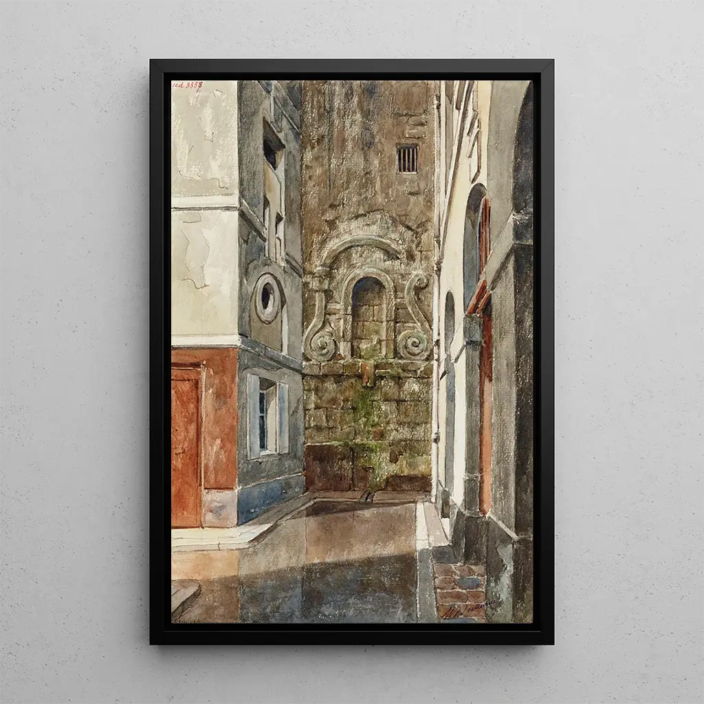 Ancienne fontaine rue Eginhard : een reflectie van het architectonisch erfgoed De oude fontein aan de rue Eginhard, vervaardigd door Henri Berthaut, is een kunstdruk die de essentie vastlegt van een vaak vergeten erfgoed. Deze kunstdruk belicht de architectonische details en de texturen van de steen, en creëert een sfeer van sereniteit en nostalgie. De warme kleuren en de delicate nuances van dit doek roepen een rijk verleden op, waarin elk element lijkt een verhaal te vertellen. De techniek van Berthaut, die precisie en gevoeligheid combineert, brengt deze fontein tot leven en maakt van dit werk een waar eerbetoon aan de schoonheid van historische locaties. Het licht speelt een essentiële rol door subtiel de contouren en vormen te verlichten, en nodigt uit tot langdurige contemplatie. Henri Berthaut : een kunstenaar tussen traditie en moderniteit Henri Berthaut, Franse schilder uit de 19e eeuw, wist zich te onderscheiden door zijn unieke benadering van landschap- en architectuurkunst. Werkend in de context van de Belle Époque, werd hij beïnvloed door de impressionistische beweging, terwijl hij een zekere strengheid behield in zijn composities. Zijn werk kenmerkt zich door een bijzondere aandacht voor details en een palet van levendige kleuren, die hulde brengen aan de schoonheid van het alledaagse. De oude fontein aan de rue Eginhard getuigt van zijn talent om stadsgezichten te vereeuwigen en biedt een waardevol inzicht in de architectuur van zijn tijd. Zo heeft Berthaut bijgedragen aan de waardering van het Franse artistieke erfgoed. Een decoratieve aanwinst met vele voordelen De kunstdruk van de oude fontein aan de rue Eginhard is een slimme decoratieve keuze voor wie zijn leefruimte wil verrijken. Of het nu in een woonkamer, kantoor of slaapkamer is, dit doek brengt een vleugje elegantie en verfijning. De kwaliteit van de afdruk garandeert een opmerkelijke fideliteit aan de details van het originele werk, terwijl het een rustgevende en inspirerende sfeer creëert. Door dit schilderij in uw inrichting te integreren, creëert u een omgeving waar kunst en geschiedenis samenkomen, en die uitnodigt tot reflectie en contemplatie. Dit werk is veel meer dan een eenvoudige decoratie; het is een open deur naar een rijk en fascinerend verleden.