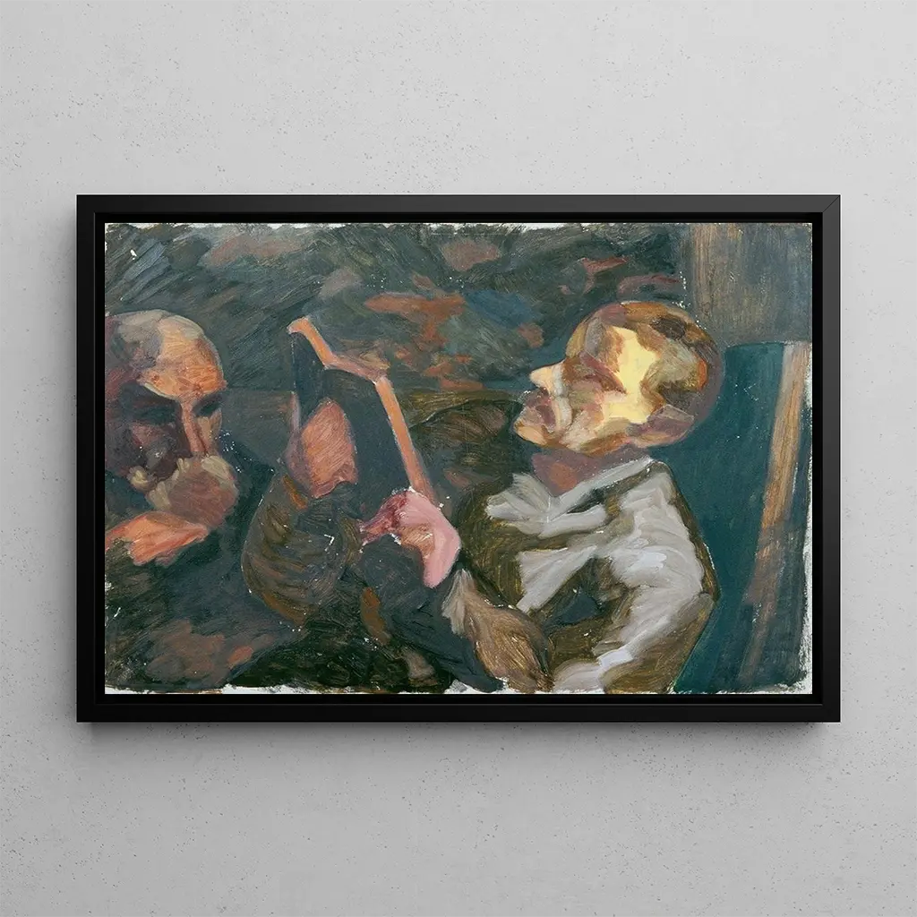 Vieil Homme Lisant : een reflectie op wijsheid "Vieil Homme Lisant" van Walther Gamerith is een kunstdruk die de diepte van wijsheid en de rust van de geest oproept. De scène toont een oudere man, verdiept in zijn lezing, ondergedompeld in een wereld van kennis en reflecties. De aardse kleuren en delicate schaduwen creëren een rustgevende sfeer, terwijl het zachte licht de gelaatstrekken van het personage accentueert. De compositie, gericht op de man en zijn boek, nodigt uit tot contemplatie en meditatie, en herinnert aan het belang van lezen in de zoektocht naar wijsheid. Walther Gamerith : een kunstenaar met een hart voor de mensheid Walther Gamerith, actief in het begin van de 20e eeuw, is een kunstenaar wiens werk zich richt op thema's van het dagelijks leven en menselijke emoties. Geïnspireerd door realistische stromingen, wist Gamerith eenvoudige maar betekenisvolle momenten vast te leggen, en de schoonheid van het gewone te benadrukken. Zijn artistieke benadering wordt gekenmerkt door een diepe gevoeligheid voor zijn onderwerpen, wat hem in staat stelde werken te creëren die resoneren met het publiek. "Vieil Homme Lisant" is een perfect voorbeeld van zijn talent om alledaagse scènes om te vormen tot aangrijpende reflecties op de menselijke conditie. Een decoratief kunstdruk met vele voordelen De kunstdruk van "Vieil Homme Lisant" vormt een ideaal decoratief stuk voor een kantoor of bibliotheek, en brengt een vleugje sereniteit in uw ruimte. De afdrukkwaliteit garandeert een opmerkelijke fideliteit aan de details en kleuren van het originele kunstwerk. Dit schilderij nodigt uit tot nadenken en discussie, en is een uitstekende keuze om uw interieurdecoratie te verrijken. Of u nu een liefhebber bent van literatuur of kunst, deze doek zal iedereen die het bekijkt weten te boeien en inspireren.