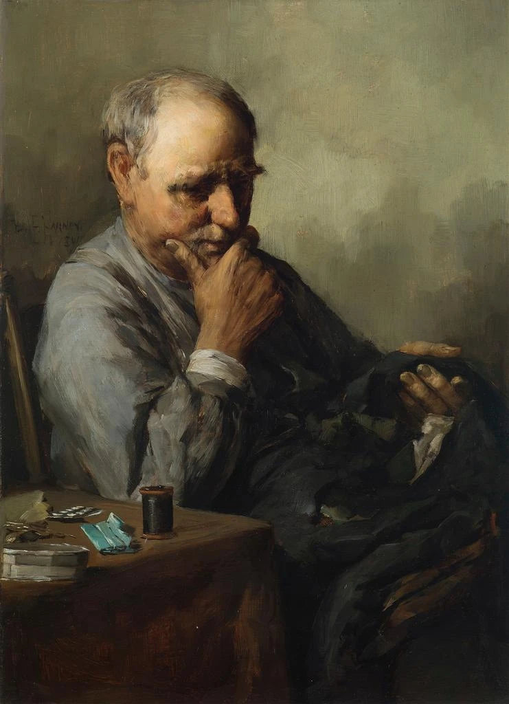 Dans cette kunstdruk du tableau "Vieil homme raccommodant", l’artiste Paul E. Harney nous plonge dans une atmosphère intimiste et chaleureuse. La composition met en avant un vieil homme, concentré sur son ouvrage de raccommodage, entouré d'une lumière douce qui éclaire subtilement son visage ridé. Les couleurs terreuses et les nuances de brun créent une ambiance nostalgique, évoquant le passage du temps et la simplicité des gestes quotidiens. La technique de Harney, qui mêle réalisme et touches impressionnistes, donne vie à cette scène, invitant le spectateur à contempler la beauté des moments ordinaires.