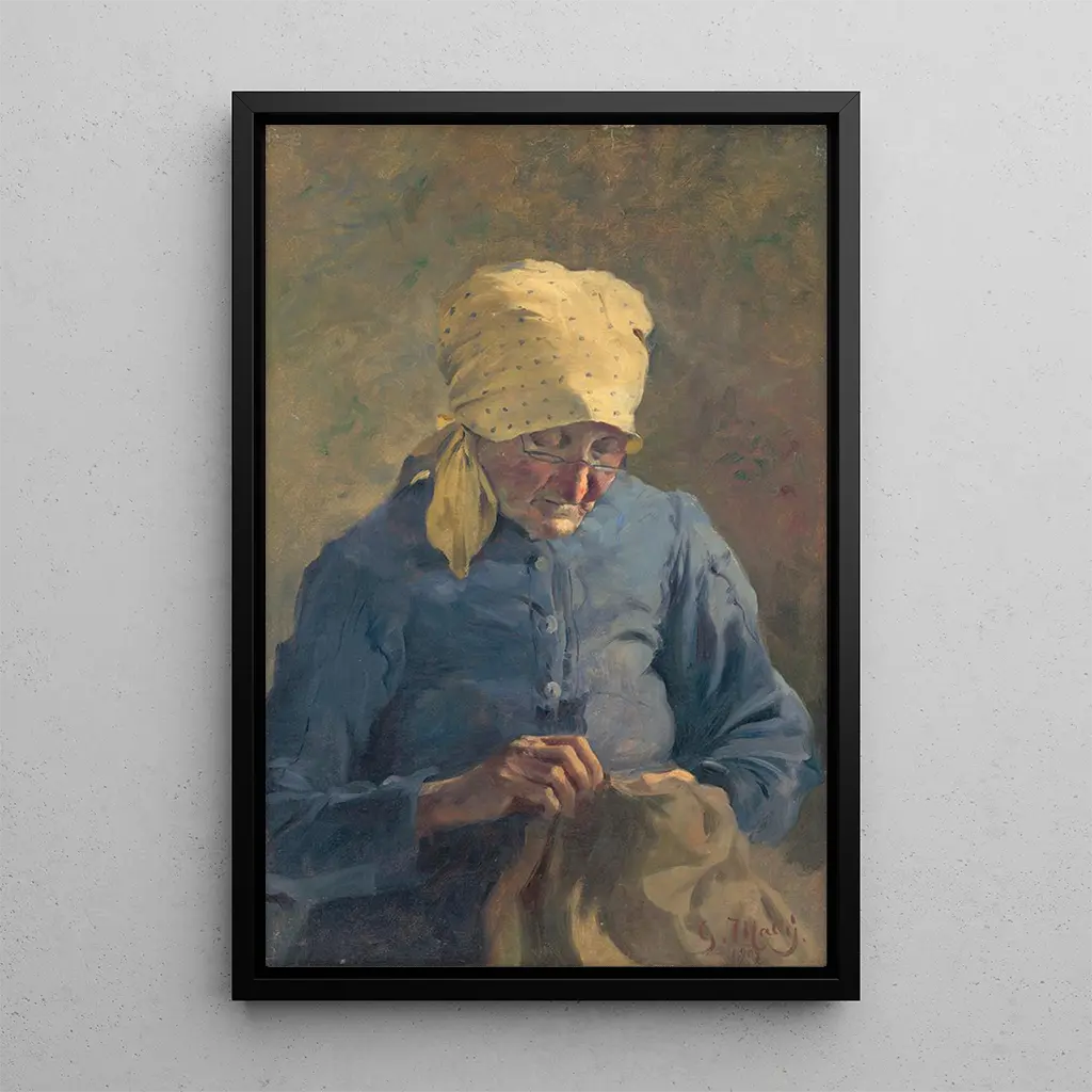 Schilderij Oude vrouw naait - Gustav Mahler | Kunstdruk