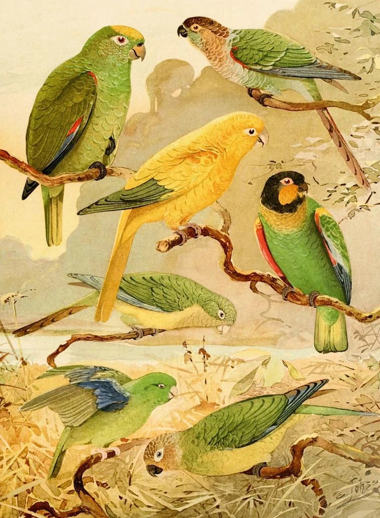 Schilderij Perroquets Tanajuba - Emil August Göldi | Kunstdruk