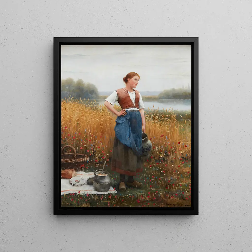 In de betoverende wereld van kunst slagen sommige werken erin de tijd en ruimte te overstijgen, momenten van leven vast te leggen doordrenkt met schoonheid en sereniteit. "Kunstdruk Pause de midi - Daniel Ridgway Knight" is een van die creaties die een rustige sfeer oproepen, de kijker uitnodigen zich onder te dompelen in een levendig schilderij. Dit werk, dat vrouwelijke figuren voorstelt die genieten van een rustmoment in een weelderig landschap, belichaamt de harmonie tussen mens en natuur. Door deze kunstdruk voelt men een uitnodiging tot contemplatie, een verlangen om te ontsnappen aan de tumulten van het dagelijks leven en zich onder te dompelen in een universum waar de tijd lijkt stil te staan.