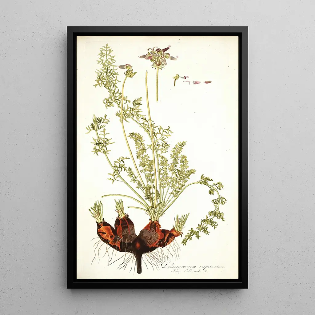 Pelargonium rapaceum : een ode aan biodiversiteit De kunstdruk Pelargonium rapaceum, gemaakt door Nikolaus Joseph Freiherr von Jacquin, is een viering van de schoonheid en diversiteit van planten. De nuances van groen en violet, subtiel gemengd, roepen de rijkdom van de flora op. De precisie van de details, kenmerkend voor de botanische stijl van Jacquin, laat de delicatesse van elke bloemblad en de kracht van de stelen voelen. Dit werk, zowel wetenschappelijk als artistiek, brengt de kijker naar een weelderige tuin, waar elk element met zorg en passie wordt benadrukt. Nikolaus Joseph Freiherr von Jacquin : een meester in botanische kunst Nikolaus Joseph Freiherr von Jacquin, actief in de achttiende eeuw, wordt erkend om zijn essentiële rol in botanische illustratie. Zijn grondige studies en reizen in Zuid-Amerika hebben hem in staat gesteld om vele plantensoorten te ontdekken en te documenteren. Pelargonium rapaceum is een van zijn iconische kunstdrukken, die zijn oog voor detail en zijn wens om de schoonheid van de natuur te delen, weerspiegelt. Door kunst en wetenschap te combineren, heeft Jacquin een blijvende erfenis achtergelaten die nog steeds botanici en hedendaagse kunstenaars inspireert. Een decoratief kunstdruk met vele voordelen De kunstdruk van de kunstdruk Pelargonium rapaceum vormt een elegante aanvulling op elk interieur, of het nu een woonkamer, kantoor of slaapkamer is. De uitzonderlijke afdrukkwaliteit en de trouw aan de originele kleuren maken het een waardevol stuk voor kunst- en botaniekliefhebbers. Door voor deze doek te kiezen, brengt u een vleugje natuur en rust in uw ruimte, terwijl u hulde brengt aan het creatieve genie van Jacquin. Dit werk is veel meer dan een eenvoudig decor, het is een uitnodiging om de schoonheid van de plantwereld te verkennen.