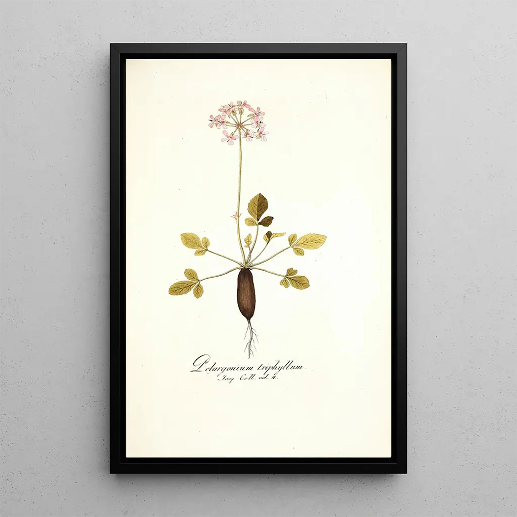 De kunstdruk van Pelargonium triphyllum is een perfecte keuze om uw woonruimte te verfraaien. Of het nu in een woonkamer, kantoor of slaapkamer is, dit schilderij brengt een vleugje kleur en natuur, en creëert een warme en uitnodigende sfeer. De afdrukkwaliteit garandeert een nauwkeurigheid in details en kleuren van het originele werk, terwijl het een onmiskenbare esthetische aantrekkingskracht biedt. Door deze doek in uw inrichting te integreren, kiest u voor een stuk dat de schoonheid van de natuur oproept en uw interieur verrijkt met een elegante bloemrijke toets.