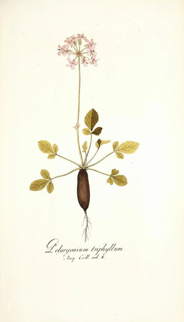 Schilderij Pelargonium triphyllum - Nikolaus Joseph Freiherr von Jacquin | Kunstdruk