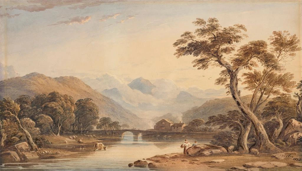 Pont de Beddgelert avec Snowdon au loin : een betoverend landschap Het Pont de Beddgelert met Snowdon op de achtergrond, een werk van John Varley, beeldt een adembenemend landschap uit, waar de wilde natuur van Wales bloeit onder een dramatische hemel. De levendige tinten groen en blauw, gecombineerd met lichteffecten, creëren een sfeer die zowel rustgevend als majestueus is. De aquareltechniek van Varley, met zijn delicate nuances en verfijnde details, laat de diepte en textuur van het landschap voelen. Dit kunstwerk nodigt uit tot ontsnapping en brengt de kijker in het hart van de natuurlijke schoonheid van Wales. John Varley: een pionier van het romantische landschap John Varley, actief in het begin van de 19e eeuw, wordt erkend als een van de voorlopers van het romantische landschap in Groot-Brittannië. Geïnspireerd door de natuur en de grote meesters van het landschap, wist hij de schoonheid van Britse landschappen vast te leggen met een unieke gevoeligheid. Varley speelde ook een belangrijke rol in het onderwijs van aquareltechnieken en inspireerde vele kunstenaars van zijn tijd. Het Pont de Beddgelert, gemaakt in een context waarin de natuur werd gevierd, getuigt van zijn talent om scènes uit het plattelandsleven weer te geven en tegelijkertijd de majesteit van de bergen te benadrukken. Een decoratief kunstwerk met vele voordelen De kunstdruk van het Pont de Beddgelert met Snowdon op de achtergrond is een ideale keuze voor wie een vleugje natuur in huis wil brengen. Of het nu in een woonkamer, kantoor of slaapkamer is, dit doek biedt een uitstekende afdrukkwaliteit en een trouwheid aan de originele kleuren. De esthetische aantrekkingskracht en het vermogen om emoties op te roepen maken van dit kunstwerk een decoratief element dat zeker de aandacht zal trekken. Door te kiezen voor deze kunstdruk voegt u een kunstwerk toe dat de schoonheid van het Wales-landschap viert en uw interieur verrijkt.
