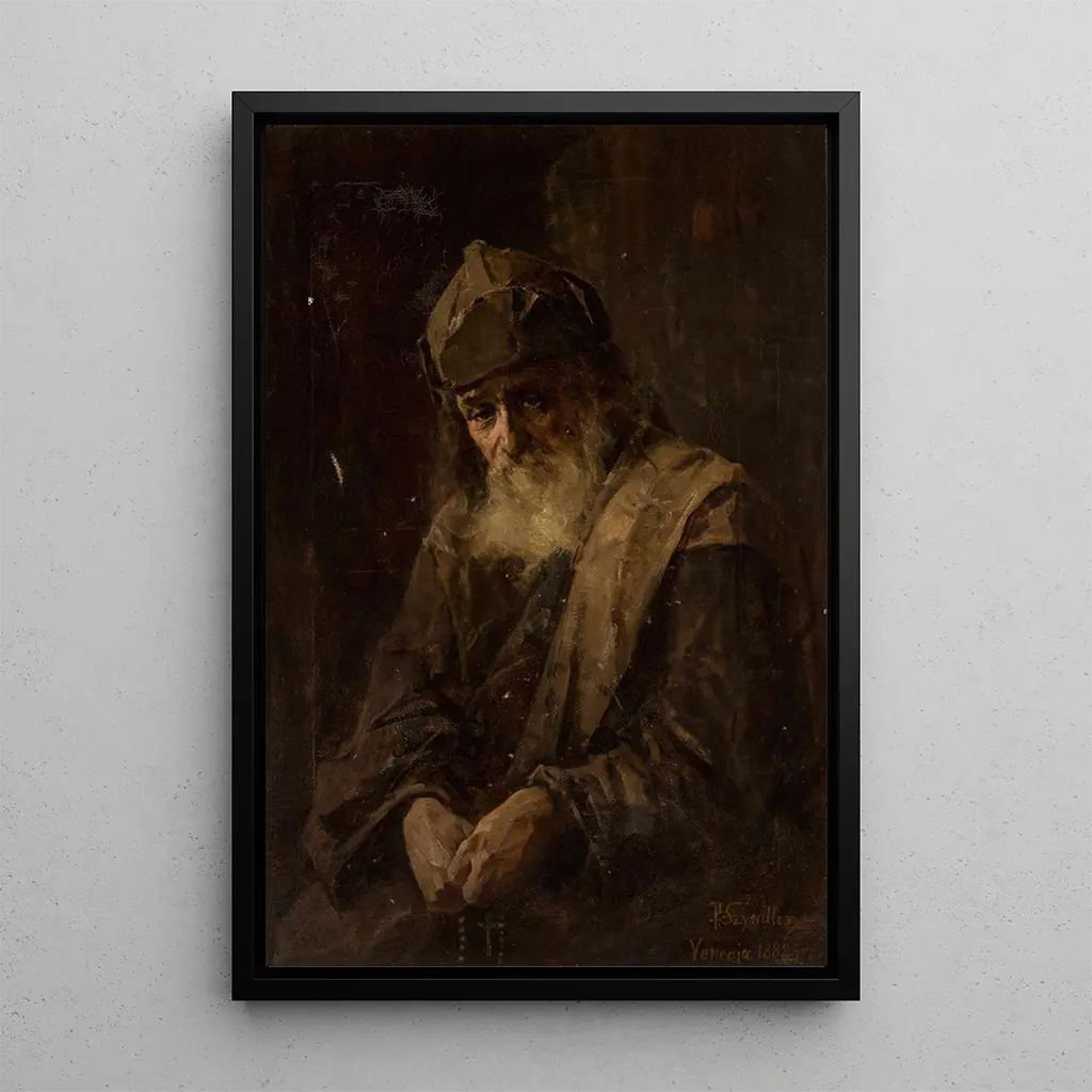 Het "Portret van een filosoof" van Pantaleon Szyndler is een kunstdruk die uitnodigt tot nadenken en introspectie. Dit schilderij, rijk aan details, benadrukt een peinzend personage, verdiept in zijn gedachten. De donkere kleuren en de versterkte schaduwen creëren een mysterieuze sfeer, wat de contemplatie versterkt. De techniek van Szyndler, die realisme en expressiviteit combineert, maakt het mogelijk de intensiteit van de geest van de filosoof te vangen. Elke penseelstreek lijkt een verhaal te vertellen, en de blik van het onderwerp lijkt de ziel van de toeschouwer te doorboren, wat aanzet tot het stellen van grote vragen over het bestaan.