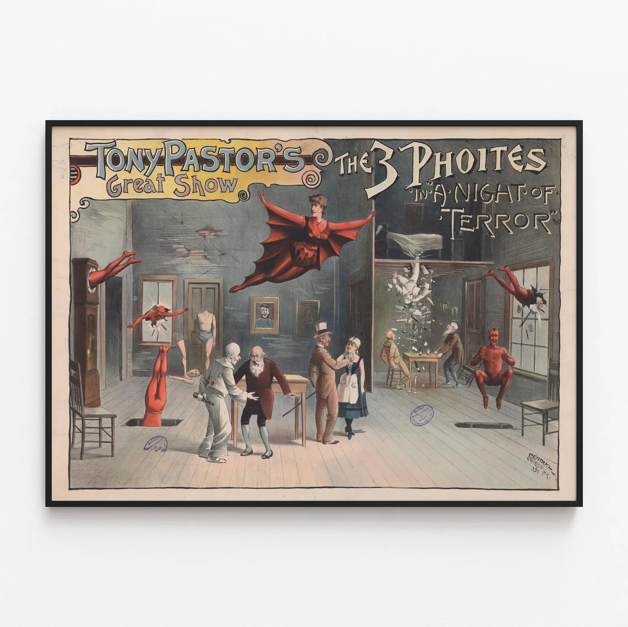 Vintage poster Tony Pastor's Great Show - The 3 Phoites in a Night of Terror