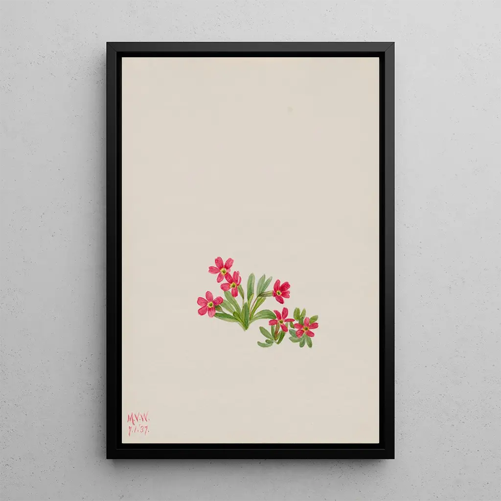 De kunstdruk van Primevère Primula angustifolia dompelt ons onder in een wereld van zachtheid en lichtheid. De delicate bloemblaadjes, in pastelkleuren, roepen de frisheid van lenteochtenden op. Elk detail wordt zorgvuldig weergegeven, van de nerven van de bladeren tot de subtiele nuances van de bloemen. De aquareltechniek, gebruikt door Mary Vaux Walcott, geeft dit werk een bijna etherische sfeer, alsof de bloemen klaar zijn om door de wind meegenomen te worden. Dit doek nodigt uit tot contemplatie, tot het ontdekken van de wonderen van de natuur, terwijl het de vergankelijke schoonheid van de bloemen viert.