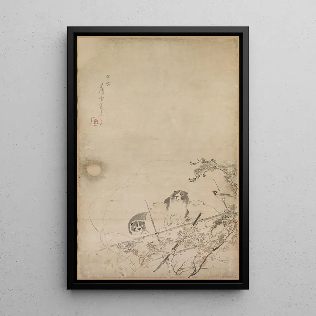 Chiots, mussen en chrysanten: een viering van het leven "Chiots, mussen en chrysanten" van Nagasawa Rosetsu is een levendige kunstdruk die de vreugde van het leven illustreert door natuurlijke elementen. De ondeugende puppy's, omringd door mussen en kleurrijke chrysanten, creëren een levendige en charmante scène. De heldere kleuren, variërend van stralend geel tot diepe roodtinten, brengen een dynamische energie in de compositie. De verfijnde techniek van Rosetsu, die fijnheid in de lijnen combineert met de glans van de pigmenten, brengt deze scène tot leven en nodigt de kijker uit om de eenvoudige schoonheid van de natuur en dieren te waarderen. Nagasawa Rosetsu: een pionier in de kunst van dieren Nagasawa Rosetsu, een iconische figuur in de Japanse kunst van de 18e eeuw, markeerde zijn tijd met zijn vernieuwende benadering van dierenkunst. Geïnspireerd door de ukiyo-e beweging, wist hij traditie en moderniteit te combineren, en bood hij een unieke visie op de fauna. Zijn werken, vaak geïnspireerd door de natuur, getuigen van een gevoeligheid en een minutieuze observatie van diergedrag. Hoewel hij minder bekend is dan sommige van zijn tijdgenoten, heeft Rosetsu een blijvende erfenis achtergelaten die toekomstige generaties kunstenaars beïnvloedt in hun weergave van het dierenleven. Een decoratief kunstdruk met vele voordelen De reproductie van "Chiots, mussen en chrysanten" is een decoratief keuze die een vrolijke toets aan uw interieur zal geven. Of het nu in een woonkamer, slaapkamer of kantoor is, dit kunstwerk trekt de aandacht en wekt verwondering. De hoge kwaliteit van de afdruk en de trouw aan het originele werk garanderen een verrijkende visuele ervaring. Door deze kunstdruk in uw decoratie te integreren, creëert u een warme en uitnodigende ruimte, terwijl u de schoonheid van de natuur en de vreugde van het dierenleven viert.