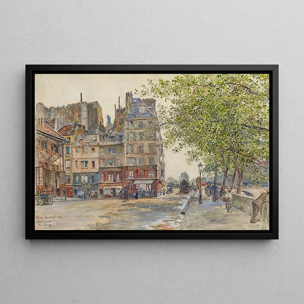 Quai des Orfèvres Parijs 1906: een duik in het Parijse leven De kunstdruk van "Quai des Orfèvres Parijs 1906" biedt een fascinerend inzicht in het stedelijke leven in Parijs aan het begin van de 20e eeuw. Frédéric Houbron, met zijn scherpe blik, legt een levendige scène vast waar voorbijgangers elkaar kruisen, ieder verdiept in zijn eigen wereld. De levendige kleuren en het spel van licht roepen de bruisende sfeer van de Franse hoofdstad op, terwijl de architectonische details van de omliggende gebouwen diepte aan de compositie toevoegen. Dit schilderij, een ware venster op het verleden, transporteert ons naar een tijd waarin Parijs het zenuwcentrum was van cultuur en kunst. Frédéric Houbron: een kunstenaar in het hart van de moderniteit Frédéric Houbron, Franse schilder en illustrator, wist de geest van zijn tijd vast te leggen door middel van zijn werken. Actief aan het begin van de 20e eeuw, wordt hij vaak geassocieerd met de impressionistische beweging, hoewel hij een eigen stijl ontwikkelde die realisme combineert met impressionistische accenten. Geïnspireerd door de grote meesters van zijn tijd, wist Houbron licht en beweging met grote beheersing te vertalen. Zijn werken, waaronder "Quai des Orfèvres Parijs 1906", getuigen van een overgangsperiode waarin de moderniteit begon door te breken in het Franse artistieke landschap, terwijl ze tegelijkertijd de tijdloze schoonheid van de Lichtstad eren. Een decoratieve aanwinst met vele voordelen Het integreren van de kunstdruk van "Quai des Orfèvres Parijs 1906" in uw interieurdecoratie betekent kiezen voor een doek dat zowel geschiedenis als moderniteit oproept. Of het nu in een woonkamer, kantoor of werkruimte is, dit schilderij brengt een vleugje elegantie en dynamiek. De afdrukkwaliteit garandeert een opmerkelijke fideliteit aan de details en kleuren van het originele werk, zodat u volop kunt genieten van de esthetische aantrekkingskracht. Door deze kunstdruk te kiezen, brengt u een stukje Parijse geschiedenis in uw dagelijks leven en creëert u een inspirerende en levendige sfeer.