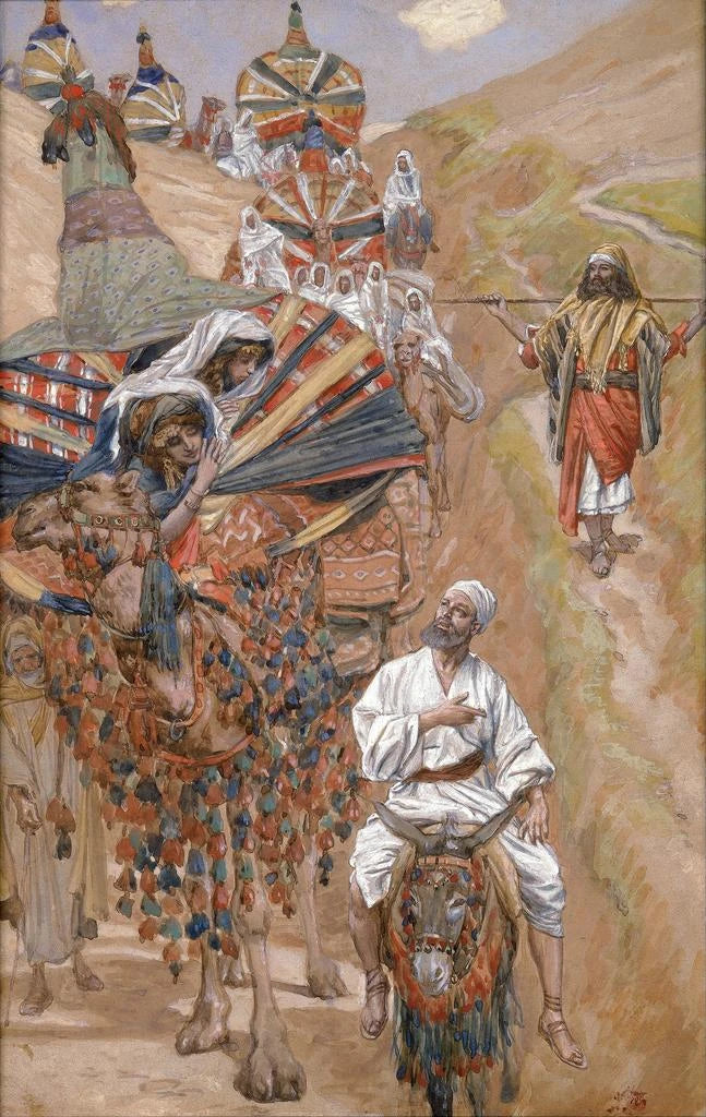 Schilderij Rebecca ontmoet Isaac onderweg - James Tissot | Kunstdruk