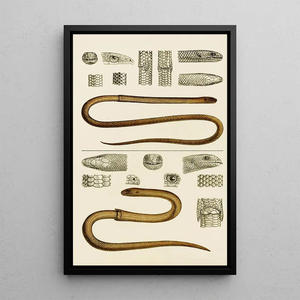 De kunstdruk van Reptiles III is een decoratief stuk dat elke ruimte kan verrijken, of het nu een woonkamer, kantoor of slaapkamer is. De afdrukkwaliteit garandeert levendige kleuren en gedetailleerde precisie, wat een opmerkelijke trouw aan het originele werk biedt. Door deze doek in uw inrichting te integreren, voegt u een vleugje elegantie en geleerdheid toe, terwijl u gesprekken over de natuur en biodiversiteit stimuleert. De esthetische aantrekkingskracht van deze doek ligt in haar vermogen om de verbeelding te prikkelen, waardoor deze kunstdruk een ideale keuze is voor liefhebbers van kunst en wetenschap.