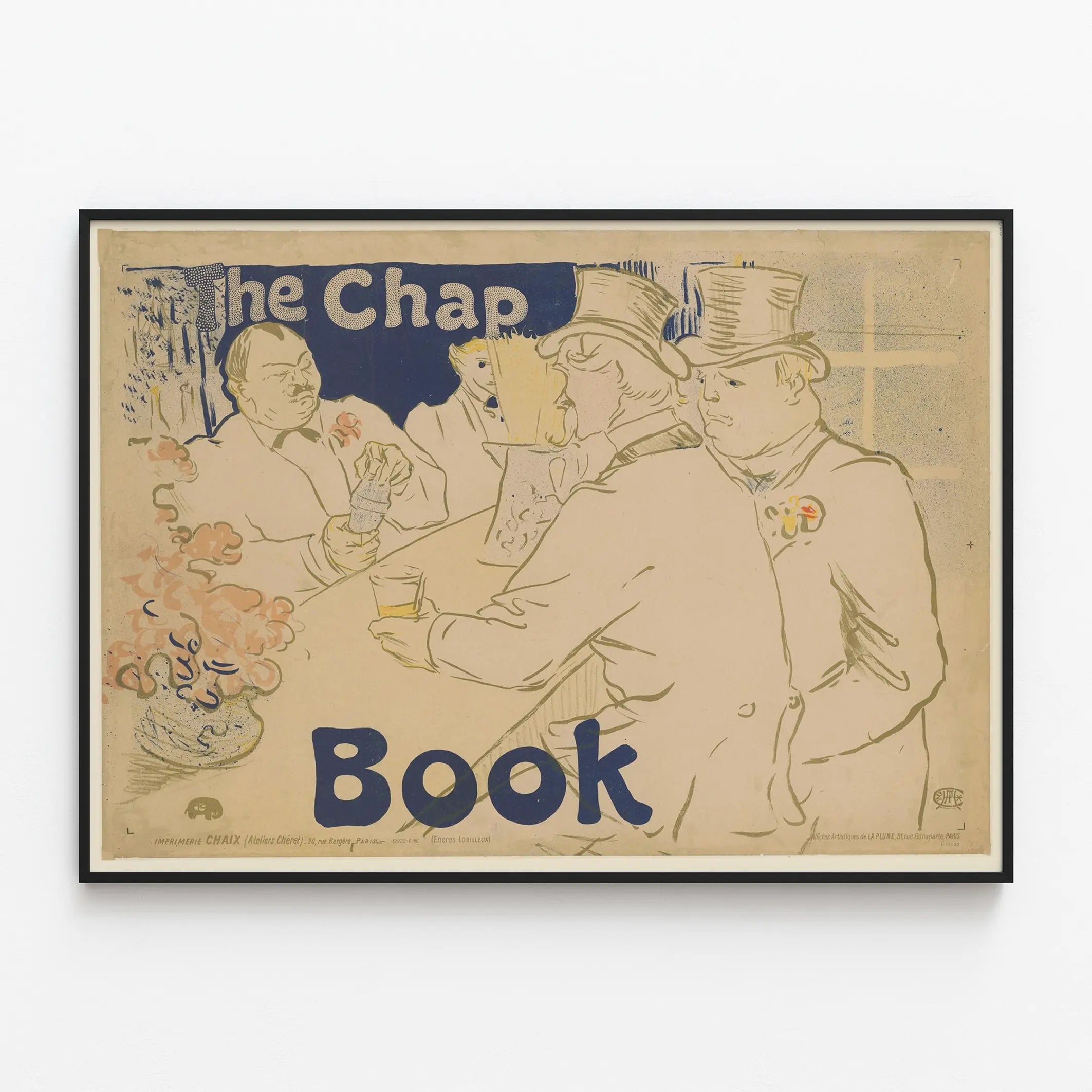 Deze vintage poster getiteld « The Chap Book » biedt een artistieke illustratie van vier elegant geklede mannen in kostuums en hoge hoeden, zittend rond een bar. De minimalistische compositie en de strakke lijnen, gecombineerd met een palet van zachte kleuren zoals beige, blauw en roze accenten, geven deze poster een retro en elegante uitstraling die perfect past bij een originele wanddecoratie. De half-abstracte vormen en het gebruik van inkt benadrukken een delicate afwerking, die doet denken aan de grafische kunst van affiches uit het begin van de twintigste eeuw. Met de inscriptie in blauwe letters die het beeld visueel in balans brengt, straalt deze wanddecoratie een oude charme uit die naadloos past in een vintage of eclectisch interieur. Dit op papier gedrukt wandbeeld, met personages die samen een gezellig moment delen, is ideaal om een muur in de woonkamer, kantoor of studeerkamer te verfraaien. Het voegt een subtiele artistieke toets toe, doordrenkt met nostalgie en elegantie. Of het nu gaat om een liefhebber van retro-esthetiek of een fan van originele wanddecoratie, deze affiche biedt een unieke accent dat elke ruimte met karakter en zachtheid verrijkt.