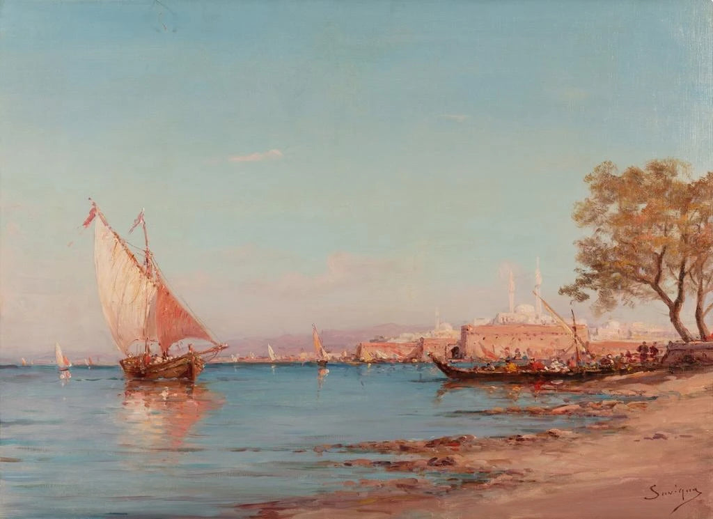 Rives du Bosphore : een schilderij dat de elegantie van Istanbul vastlegt De kunstdruk van "Rives du Bosphore" dompelt ons onder in het bruisende hart van Istanbul, waar Oost en West samenkomen. De nuances van blauw en groen, gemengd met warme kleuren, roepen de schoonheid op van stedelijke en maritieme landschappen. De techniek van de kunstenaar, die aquarel en olie combineert, creëert een levendige en dynamische sfeer. De silhouetten van historische gebouwen snijden zich af tegen de hemel, terwijl de boten rustig over de wateren van de Bosporus glijden. Dit schilderij is een ware open raam naar een stad vol geschiedenis en cultuur. Henry Malfroy : een getuige van de schoonheid van de wereld Henry Malfroy, schilder uit de 19e eeuw, staat bekend om zijn landschappen en scènes uit het dagelijks leven, vaak geïnspireerd door zijn reizen. Zijn stijl, beïnvloed door het realisme, wordt gekenmerkt door een bijzondere aandacht voor details en lichteffecten. Malfroy wist de essentie van de plaatsen die hij bezocht te vangen, vooral Istanbul, waar hij gefascineerd was door de culturele en architectonische diversiteit. Zijn werken, gewaardeerd om hun authenticiteit, blijven de aandacht trekken van verzamelaars en kunstliefhebbers, wat de belangrijkheid van zijn werk in het artistieke landschap van zijn tijd onderstreept. Een decoratief aanwinst met vele voordelen De kunstdruk van "Rives du Bosphore" is een perfecte aanvulling op uw interieurdecoratie, die een vleugje exotisme en verfijning brengt. Of het nu in een woonkamer, kantoor of slaapkamer is, dit doek zal de aandacht trekken en gesprekken uitlokken. De kwaliteit van de kunstdruk garandeert een trouwheid aan het originele werk, zodat u kunt genieten van de schoonheid van de kunst zonder de beperkingen van een authentiek stuk. Door dit schilderij in uw ruimte te integreren, creëert u een inspirerende en gastvrije sfeer, terwijl u de culturele rijkdom van Istanbul viert. Dit werk is een ware decoratieve troef met vele facetten.
