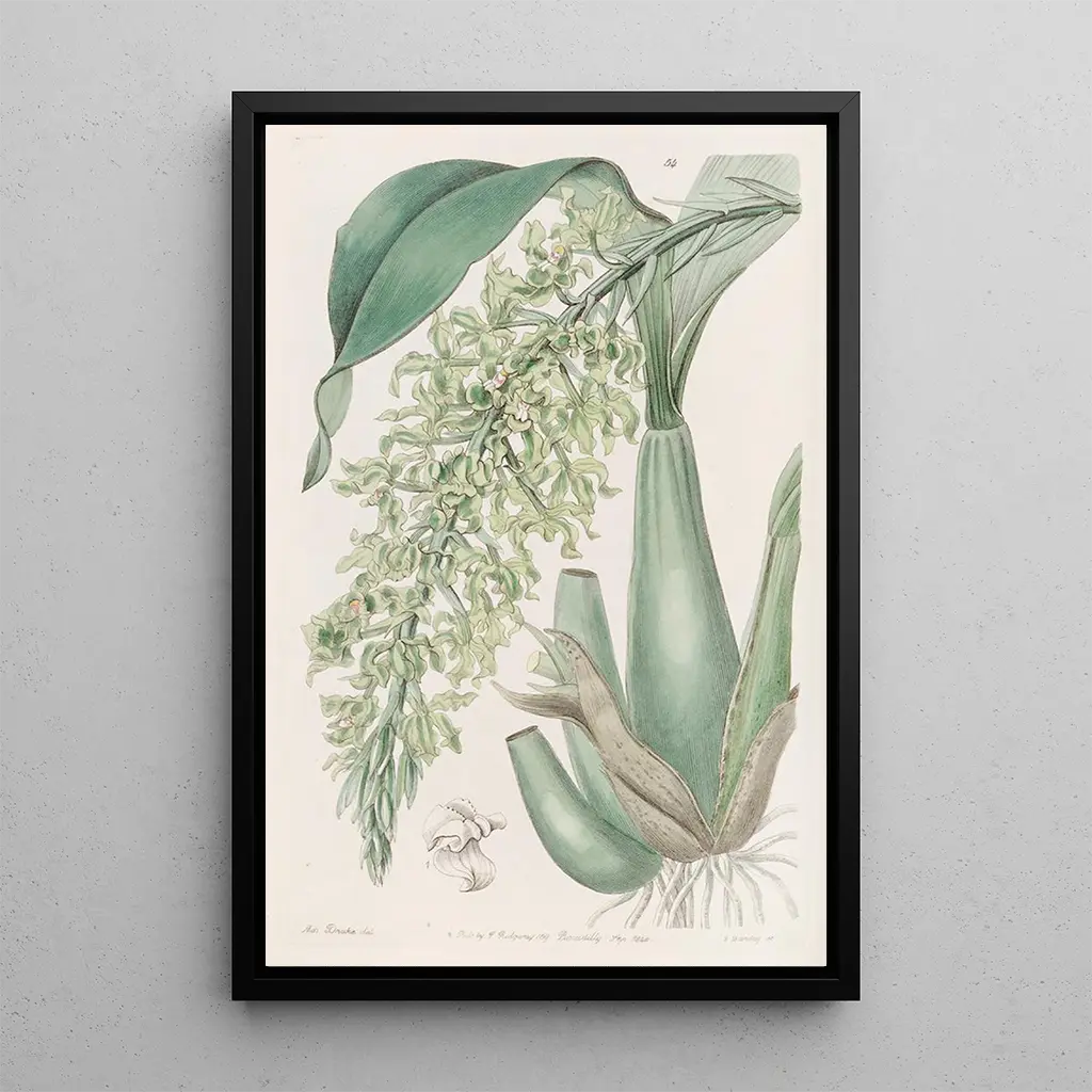 Rodriguezia parfumée et frisée : een bloemengeur van exotisch bloemrijkheid De kunstdruk van Rodriguezia parfumée et frisée brengt ons in een bloemrijke wereld waar exotisme de scepter zwaait. De delicate bloemen, in pastelkleuren, ontvouwen zich gracieus, terwijl de gekrulde bladeren een fascinerende textuur toevoegen aan het geheel. De illustratietechniek van Sydenham Edwards benadrukt de natuurlijke schoonheid van deze plant, door het licht en de schaduwen met opmerkelijke precisie vast te leggen. De sfeer die uit dit werk straalt, is zowel rustgevend als inspirerend, en nodigt uit tot dromen en ontsnapping naar verre oorden waar de natuur bloeit zonder beperkingen. Sydenham Edwards : de kunst van de botanica ten dienste van de wetenschap Sydenham Edwards, iconische figuur van de botanische illustratie uit de 19e eeuw, wist kunst en wetenschap te combineren in zijn werken. Zijn passie voor planten leidde tot het maken van uiterst precieze illustraties, die bijdroegen aan de documentatie van plantensoorten. Door werken zoals Rodriguezia parfumée et frisée heeft Edwards niet alleen de schoonheid van de flora gevierd, maar ook een belangrijke rol gespeeld in de popularisering van botanische kennis uit zijn tijd. Zijn onderscheidende stijl, gekenmerkt door een minutieuze aandacht voor details, heeft een blijvende indruk achtergelaten in de wereld van de botanische kunst. Een decoratief stuk met vele voordelen De kunstdruk van Rodriguezia parfumée et frisée is een decoratief stuk dat een vleugje elegantie en frisheid toevoegt aan elke ruimte. Of het nu in een woonkamer, slaapkamer of zelfs kantoor is, dit schilderij nodigt uit tot sereniteit en ontsnapping. De afdrukkwaliteit garandeert een uitzonderlijke trouw aan de kleuren en details van het originele werk, waardoor deze doek een waardevolle aanvulling is op je interieurdecoratie. Door voor dit werk te kiezen, kies je voor een stuk dat niet alleen je omgeving verfraait, maar ook het artistieke erfgoed van Sydenham Edwards en zijn liefde voor de natuur oproept.