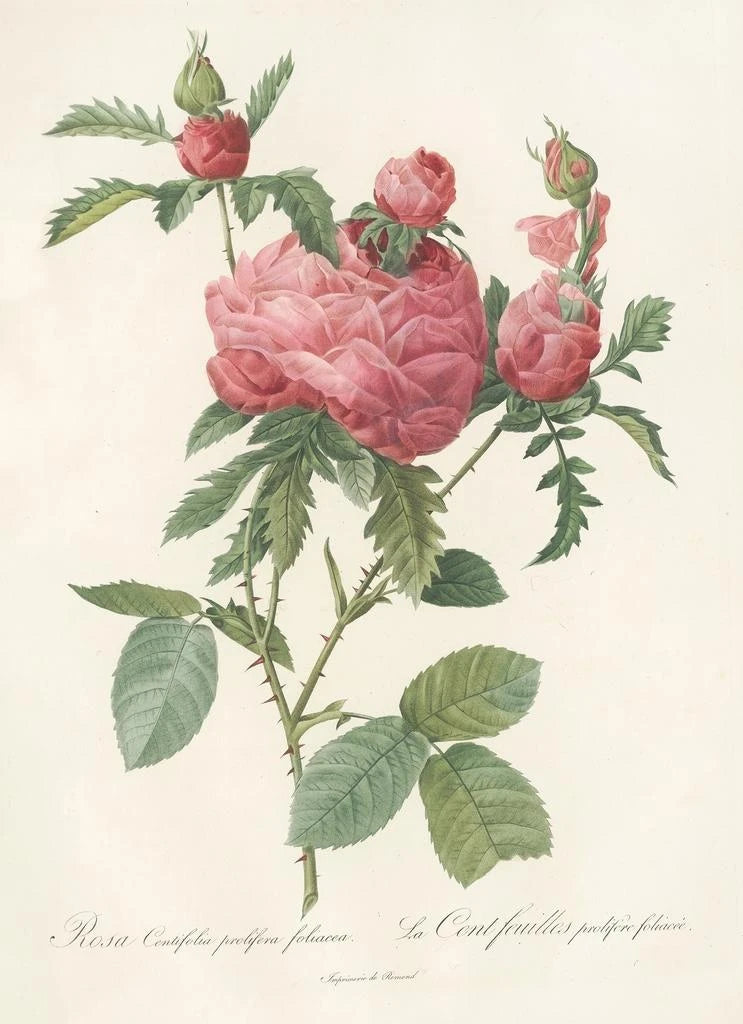 Schilderij Rosa Centifolia Prolifera Foliacea - Pierre Joseph Redouté | Kunstdruk