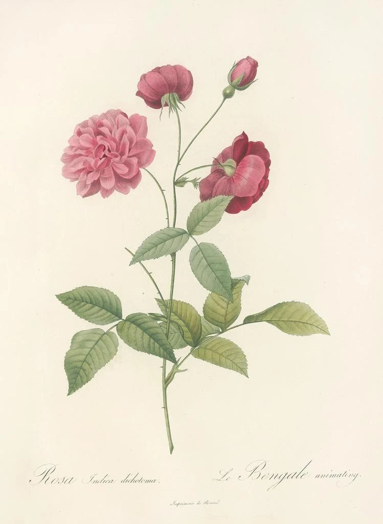 Schilderij Rosa Indica Dichotoma - Pierre Joseph Redouté | Kunstdruk