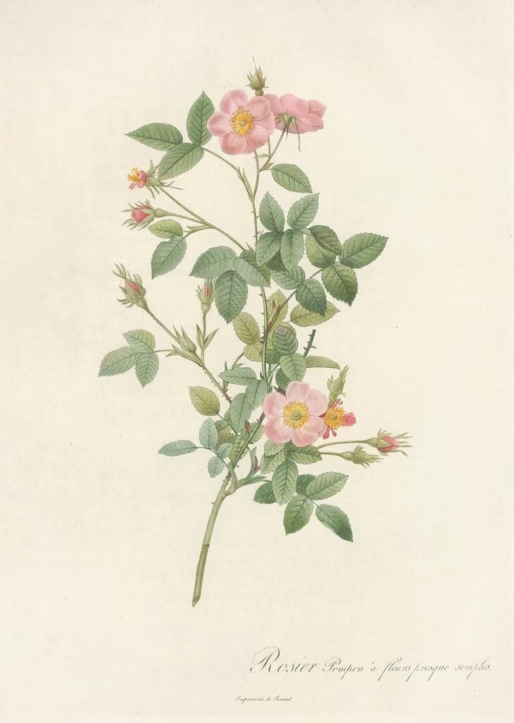 Pierre Joseph Redouté wordt erkend als een van de grootste botanische illustratoren van zijn tijd. Actief aan het einde van de 18e eeuw en het begin van de 19e eeuw, wist hij kunst en wetenschap te combineren in zijn werken. Opgeleid aan de school van de natuur, werd hij beïnvloed door de botanische vooruitgang van zijn tijd, wat hem in staat stelde om illustraties van ongeëvenaarde precisie te maken. Zijn werken, waaronder Rosa Pomponia Flore Subsimplici, zijn niet alleen getuigenissen van de schoonheid van bloemen, maar ook belangrijke bijdragen aan de wetenschappelijke documentatie van planten.