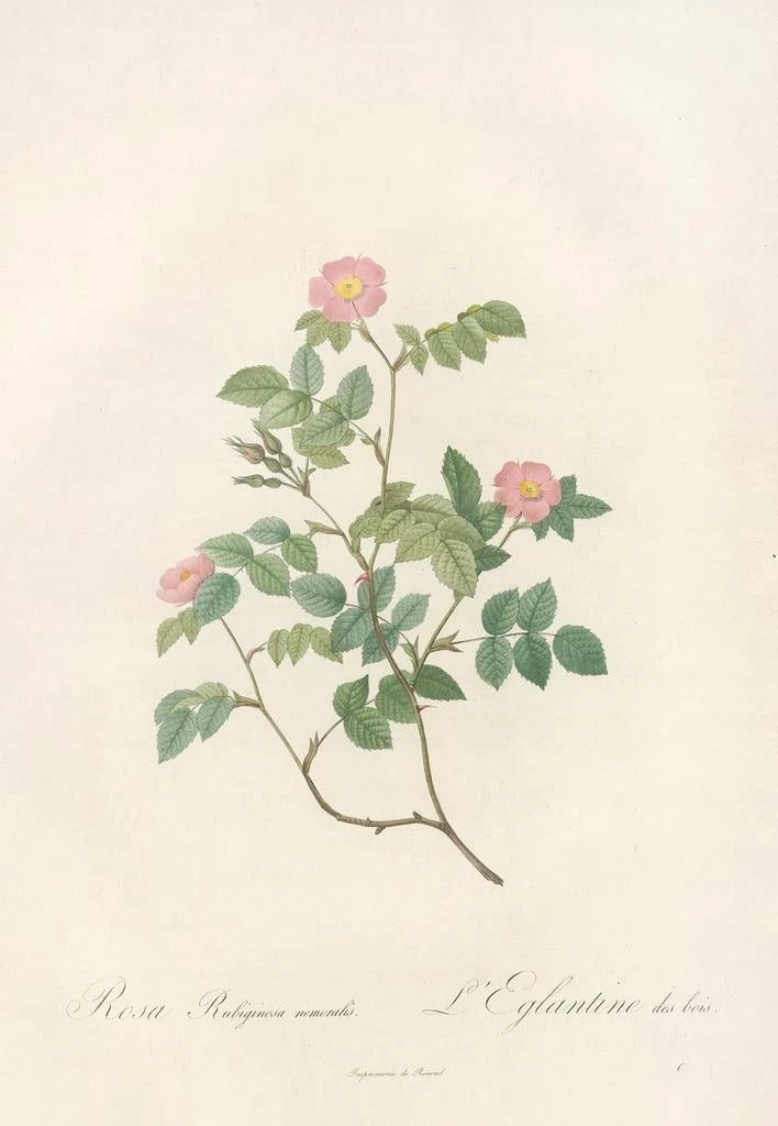 Schilderij Rosa Rubiginosa Nemoralis - Pierre Joseph Redouté | Kunstdruk