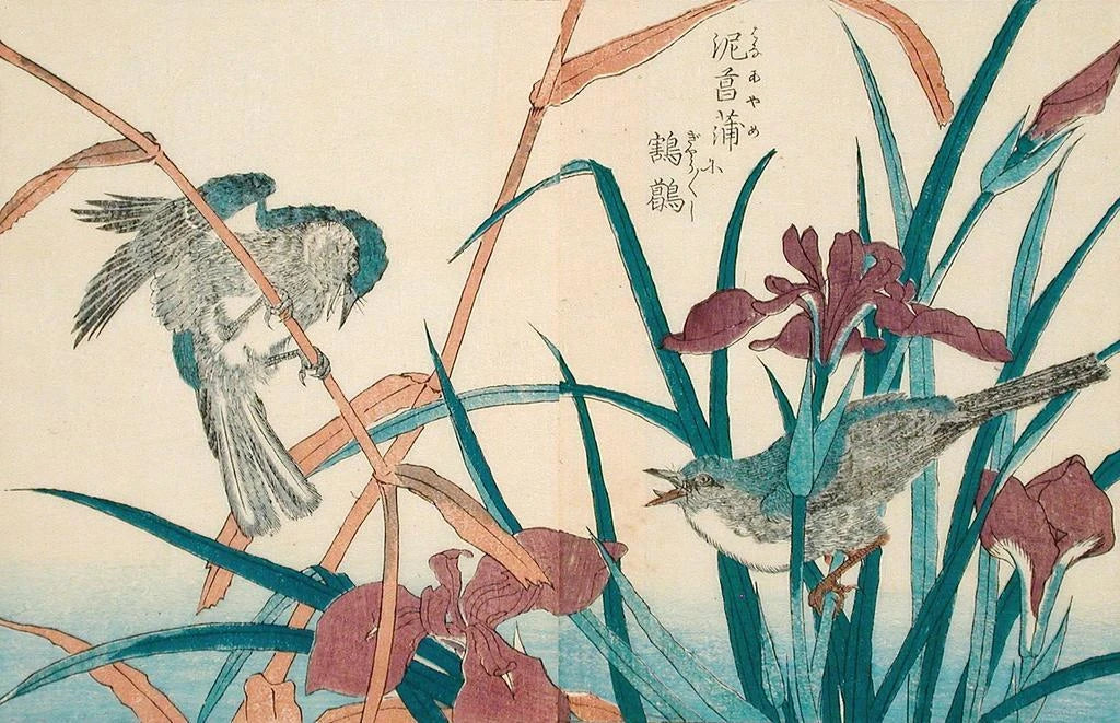 Rousserolle met riet en iris - Kitao Shigemasa