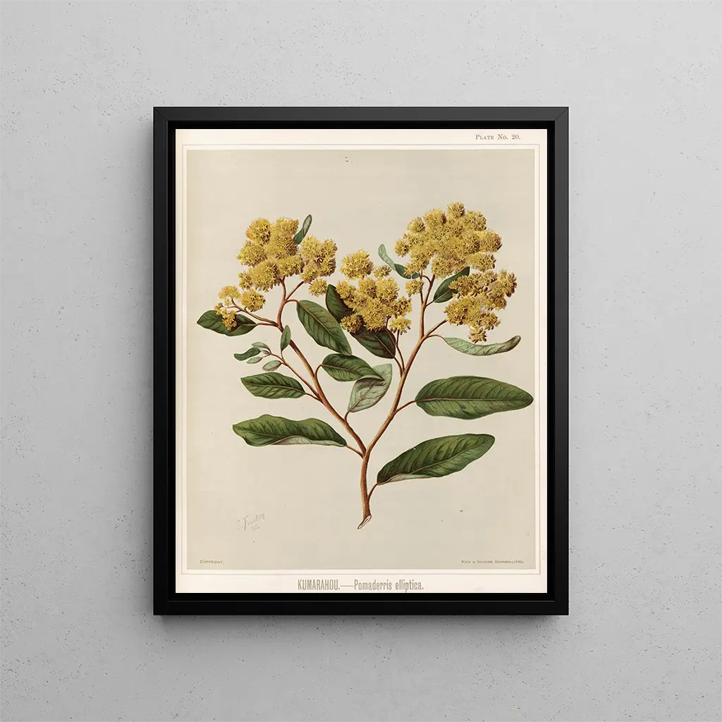 In dit kunstwerk beeldt Sarah Featon de Kumarahou, of Pomaderris elliptica, een inheemse plant uit Nieuw-Zeeland, uit. Met een delicate artistieke benadering slaagt ze erin de details van deze plant vast te leggen, van haar bloemen tot haar blad. De precisie van Featon maakt haar tot een gerespecteerde botanische kunstenaar, en haar werken zijn gewilde stukken geworden vanwege hun vermogen om onze leefruimtes te verrijken. De illustraties van Featon brengen een vleugje natuur en een verfijste esthetiek, die harmonieus integreren in verschillende interieurdecoratiestijlen. Ze zijn ideaal voor wie een rustgevende en inspirerende omgeving wil creëren. Ontdek dit kunstwerk op Artem Legrand en laat u betoveren door de schoonheid van de Nieuw-Zeelandse flora.