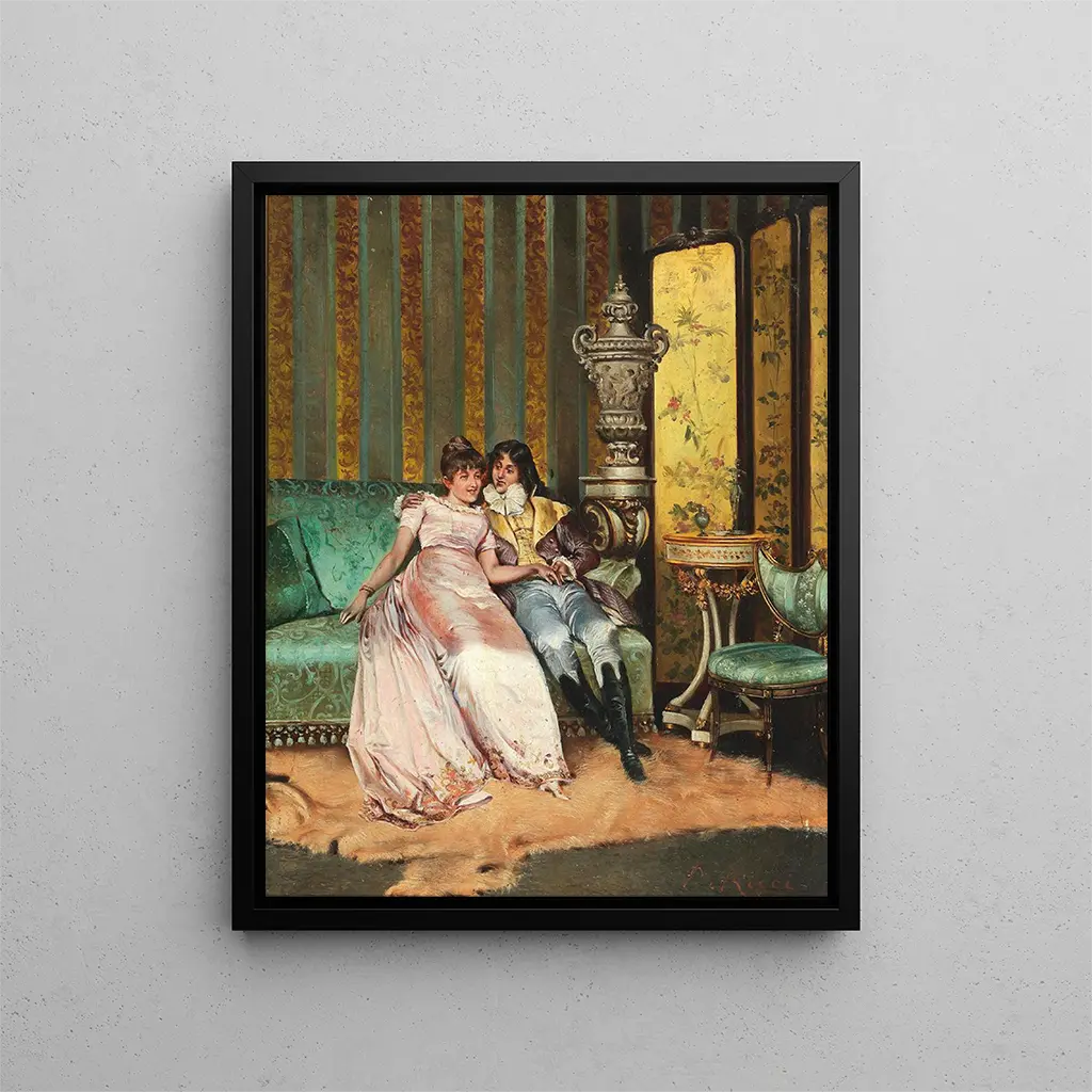 Elegante scène galante de Pio Ricci, parfaite pour ajouter une touche sophistiquée à votre collection d'art. Cette œuvre captivante incarne le charme et la grâce de l'époque, illustrant une scène intime et raffinée. Idéal pour les amateurs d'art classique et les collectionneurs exigeants, cette pièce est un véritable chef-d'œuvre qui apportera élégance et prestige à tout espace. Ne manquez pas cette occasion d'acquérir une œuvre exceptionnelle signée par l'artiste renommé.