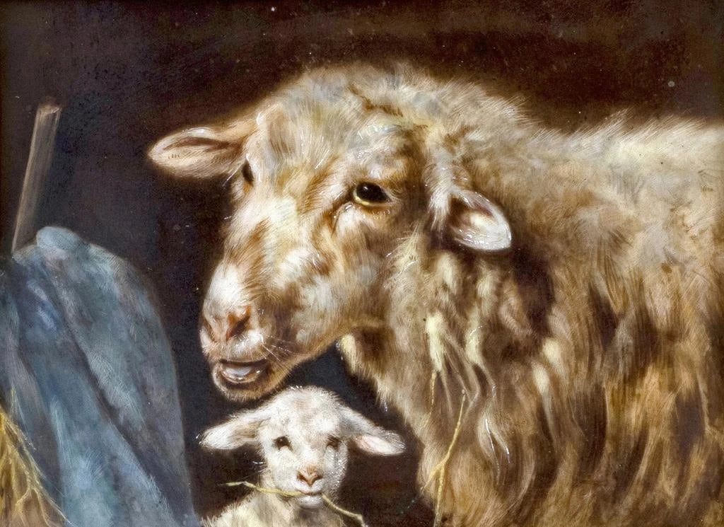 Schaap met lam in de schuur - Friedrich Otto Gebler