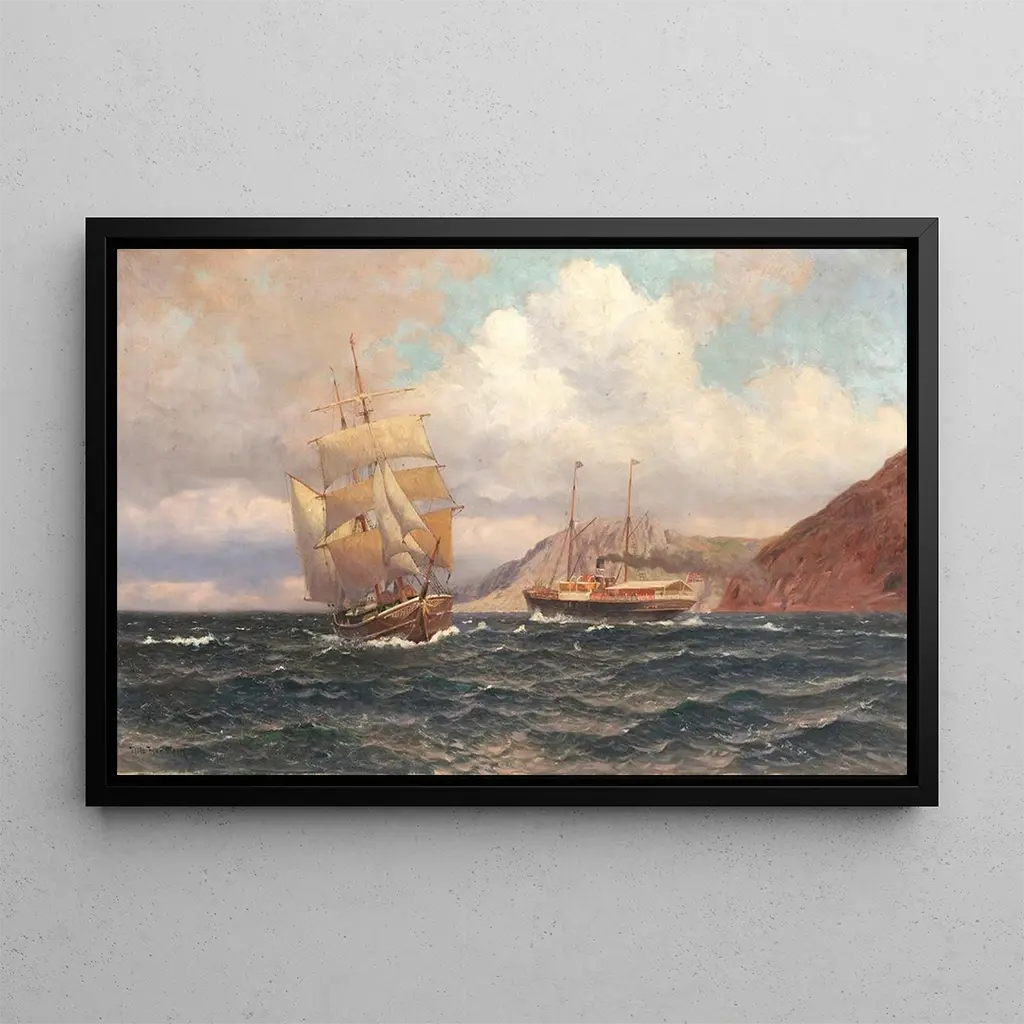 De kunstdruk van Schepen op zee is een ideale keuze voor wie een vleugje maritieme elegantie aan hun inrichting wil toevoegen. Of het nu in een kantoor, woonkamer of slaapkamer is, dit schilderij roept avontuur en rust uit die de oceanen kenmerken. De kwaliteit van de kunstdruk garandeert een nauwkeurige weergave van de kleuren en details van het originele werk, zodat u volop kunt genieten van Hansteen's kunst. Met zijn esthetische aantrekkingskracht en inspirerende kracht wordt dit doek een decoratief element dat uw leefruimte verrijkt en tegelijkertijd de schoonheid van de zee viert.