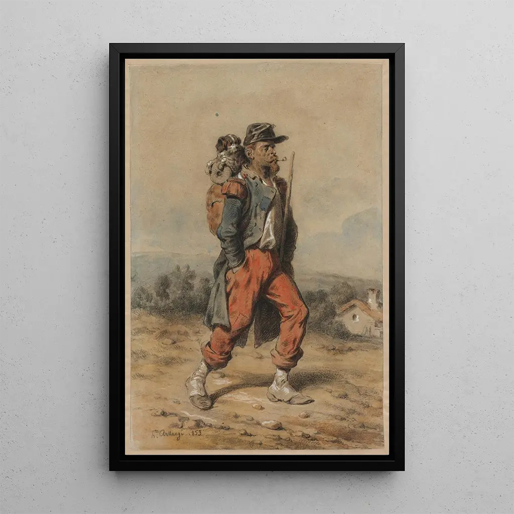 In dit indrukwekkende kunstdruk vastlegt het schilderij "Soldaat met hond" van Hippolyte Bellangé de essentie van moed en trouw. De compositie benadrukt een soldaat in uniform, met een vastberaden blik gericht op de horizon, terwijl er aan zijn voeten een hond met ogen vol toewijding staat. De warme, aardse kleuren, gecombineerd met lichte accenten, creëren een sfeer die zowel nostalgisch als heroïsch is. De techniek van Bellangé, die realisme en romantiek combineert, brengt deze scène tot leven en roept diepe emoties op, evenals een onbreekbare band tussen mens en zijn metgezel.