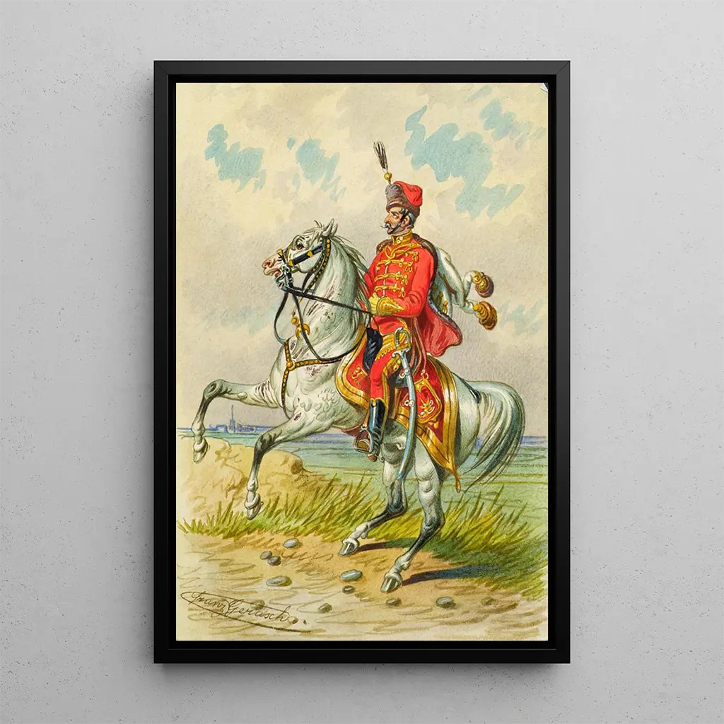 Franz Gerasch, actief in de 19e eeuw, is een schilder wiens werk zich richt op militaire en ruiter-thema's. Zijn stijl, beïnvloed door het romantisme, weerspiegelt de waarden van moed en heldhaftigheid van zijn tijd. Gerasch heeft, door zijn schilderijen, de essentie van de personages die hij afbeeldt weten vast te leggen, terwijl hij de schoonheid van de paarden eert. Zijn werken worden vaak gezien als een spiegel van de aspiraties van zijn tijd, waarin militaire glorie en patriottisme werden gevierd.