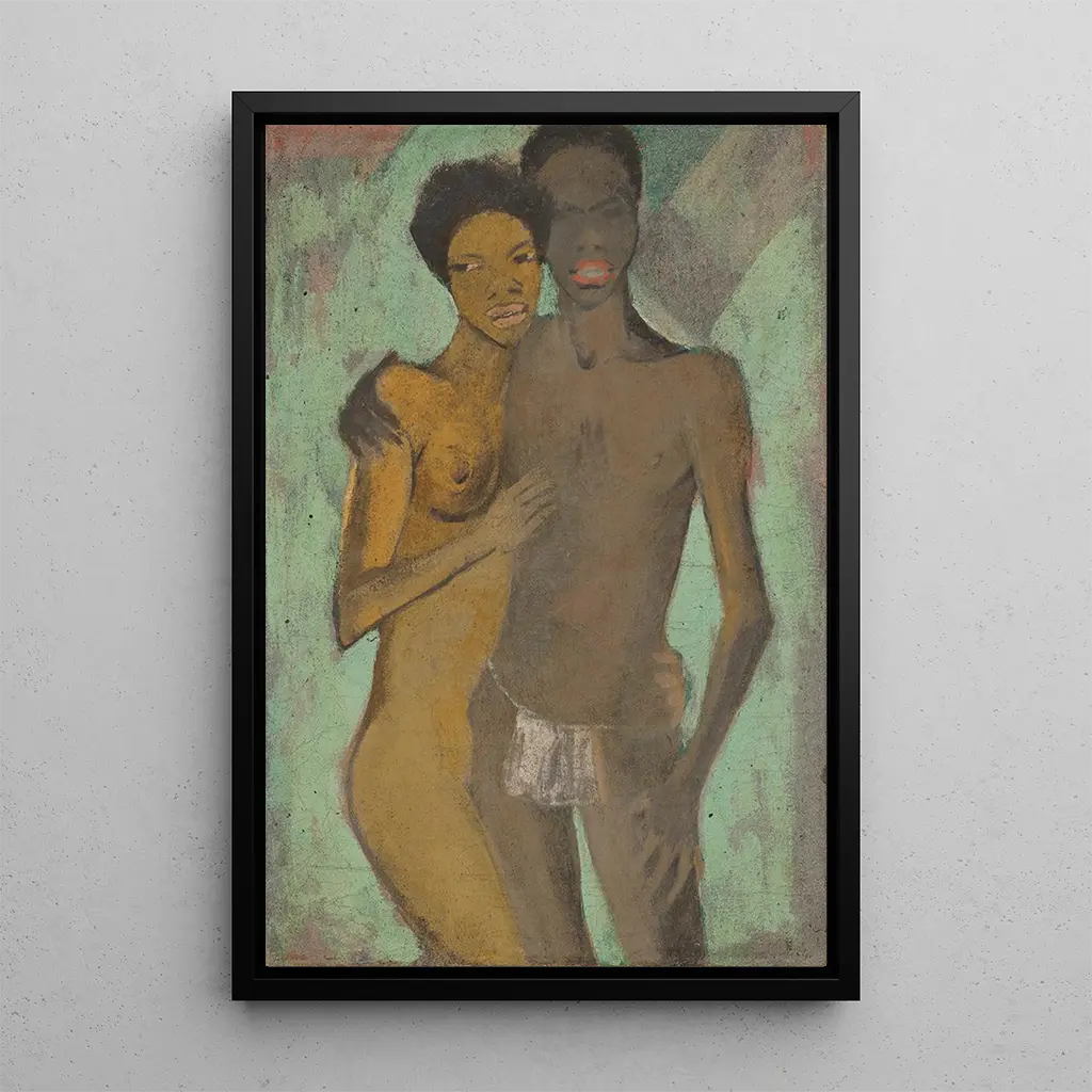 Dans cette œuvre captivante, Otto Mueller dépeint un couple d'amoureux, fusionnant tendrement leurs corps et leurs âmes. Les couleurs chaudes et terreuses, typiques de son style, enveloppent la scène d'une atmosphère intime et chaleureuse. La technique de l'aquarelle, avec ses nuances délicates, permet de ressentir la légèreté des émotions qui se dégagent de cette composition. Les formes fluides et les contours doux évoquent une harmonie parfaite entre les deux figures, symbolisant non seulement l'amour, mais aussi la collaboration artistique. Cette toile invite à une contemplation profonde, où chaque regard révèle une nouvelle facette de leur connexion.