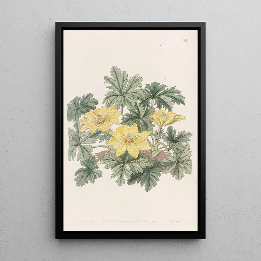 De kunstdruk "Trolle zonder steel" van Sydenham Edwards is een delicate creatie die de subtiele schoonheid van een vaak onbekende plant benadrukt. De nuances van groen en wit versmelten zachtjes, waardoor een rustgevende en sereuze sfeer ontstaat. De aquareltechniek, beheerst door Edwards, maakt het mogelijk om de fijne details van de bladeren en bloemen vast te leggen, waardoor deze botanische voorstelling tot leven komt. Het kunstwerk nodigt uit tot rustige contemplatie en onthult de gratie en elegantie van de natuur in al haar pracht.