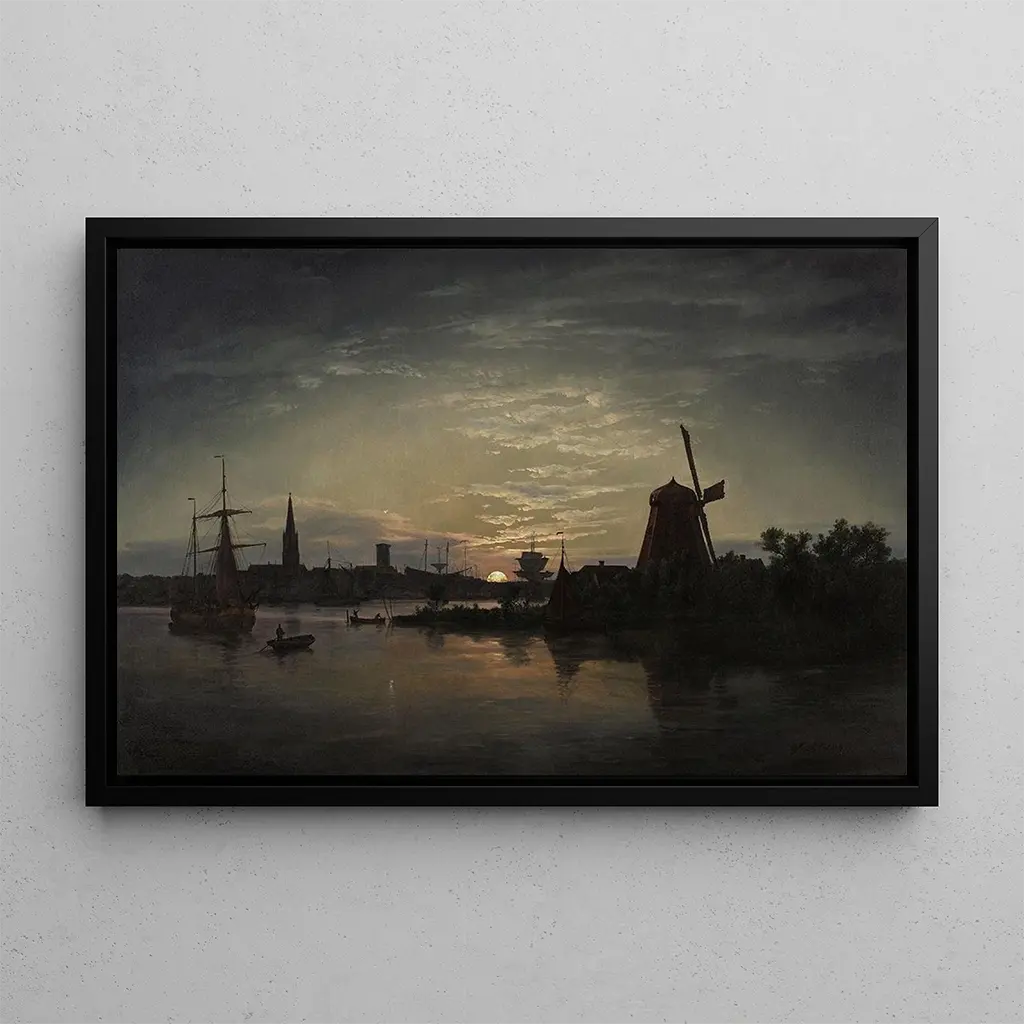 Świnoujście bij het maanlicht: een nachtelijke poëzie op doek De kunstdruk van Świnoujście bij het maanlicht brengt de kijker in een serene en contemplatieve sfeer. De zilveren reflecties van de maan dansen op het rustige water, waardoor een betoverend lichtspel ontstaat. Johan Christian Dahl, met zijn beheersing van de nuances van blauw en wit, slaagt erin de magie van een sterrennacht vast te leggen. De architectonische details van de gebouwen op de achtergrond voegen een vleugje romantiek toe aan deze nachtelijke scène, en nodigen uit tot dromen. Elk element van dit doek lijkt geheimen te fluisteren, waardoor het werk des te boeiender wordt. Johan Christian Dahl: een pionier van het romantische landschap Johan Christian Dahl wordt beschouwd als een van de voorlopers van het romantische landschap in Noorwegen. Actief in het begin van de 19e eeuw, werd hij sterk beïnvloed door de landschappen van zijn geboorteland, evenals door de meesters van het Europese romantisme. Dahl wist de grootsheid van de natuur te combineren met menselijke elementen, en creëerde evenwichtige en ontroerende composities. Zijn vermogen om te spelen met licht en sfeer maakte hem tot een gerespecteerde kunstenaar, wiens werken nog steeds worden gevierd. De kunstdruk van Świnoujście bij het maanlicht illustreert perfect zijn talent om emoties op te roepen door middel van het landschap. Een decoratief stuk met vele voordelen Het kiezen van de kunstdruk van Świnoujście bij het maanlicht voegt een vleugje poëzie toe aan uw interieurdecoratie. Dit doek past harmonieus in diverse ruimtes, of het nu een woonkamer, kantoor of slaapkamer is. De reproduktiekwaliteit garandeert een trouwheid aan de kleuren en details van het originele werk, waardoor u de visie van Dahl volledig kunt waarderen. Met zijn onmiskenbare esthetische aantrekkingskracht wordt dit kunstwerk een blikvanger die de aandacht trekt en bewondering oproept. Door het aan uw collectie toe te voegen, verrijkt u uw omgeving met een kunstwerk dat de tijdloze schoonheid van de nachtelijke natuur oproept.