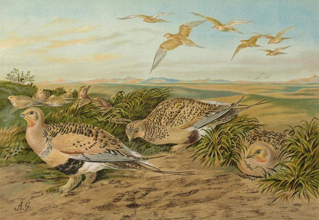 Johann Friedrich Naumann, Duitse naturalist en schilder uit de 19e eeuw, wordt erkend voor zijn bijdragen aan de ornithologie en de kunst. Zijn passie voor vogels heeft hem geleid tot het maken van gedetailleerde en nauwkeurige illustraties van vele soorten, waaronder de Syrrhaptes paradoxus. Geïnspireerd door de wetenschappelijke ontdekkingen van zijn tijd, wist Naumann kunst en wetenschap te combineren, waardoor zijn werken niet alleen esthetisch maar ook informatief zijn. Zijn inzet voor het behoud van soorten en zijn talent om de schoonheid van de natuur vast te leggen, maken hem een onmisbare figuur in het veld van de ornithologische kunst.
