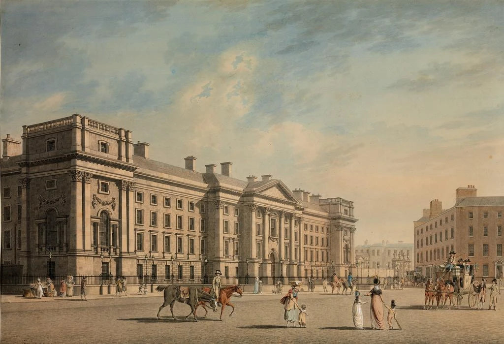 James Malton, Iers kunstenaar en architect uit de achttiende eeuw, is vooral bekend om zijn gedetailleerde uitzichten van Dublin en omgeving. Zijn werk, gebaseerd op de neoclassicistische stijl, weerspiegelt een periode van welvaart en architectonische ontwikkeling in Ierland. Malton wist de geest van zijn tijd vast te leggen en biedt een waardevol inzicht in de stad op een moment dat ze moderniseerde. Zijn werken, waaronder Trinity College, zijn niet alleen artistieke getuigenissen, maar ook historische archieven die inzicht geven in de evolutie van de Ierse stedelijke planning en architectuur.