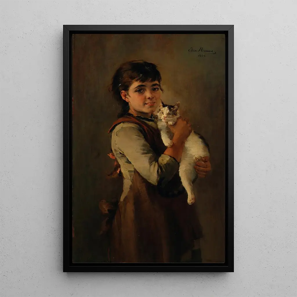 Dans cette kunstdruk de l'œuvre "Deux chatons", Elisa Baronin von Ransonnet-Villez-Nemes capture la douceur et l'innocence de deux jeunes félins. Les chatons, aux pelages délicats, sont représentés dans une pose câline, entourés d'une atmosphère chaleureuse et apaisante. Les couleurs pastel, mêlant des nuances de crème et de gris, créent un contraste subtil avec le fond, mettant en valeur la fragilité de ces petites créatures. La technique de l'artiste, qui allie réalisme et délicatesse, invite le spectateur à s'émerveiller devant la beauté de la nature et la complicité animale.