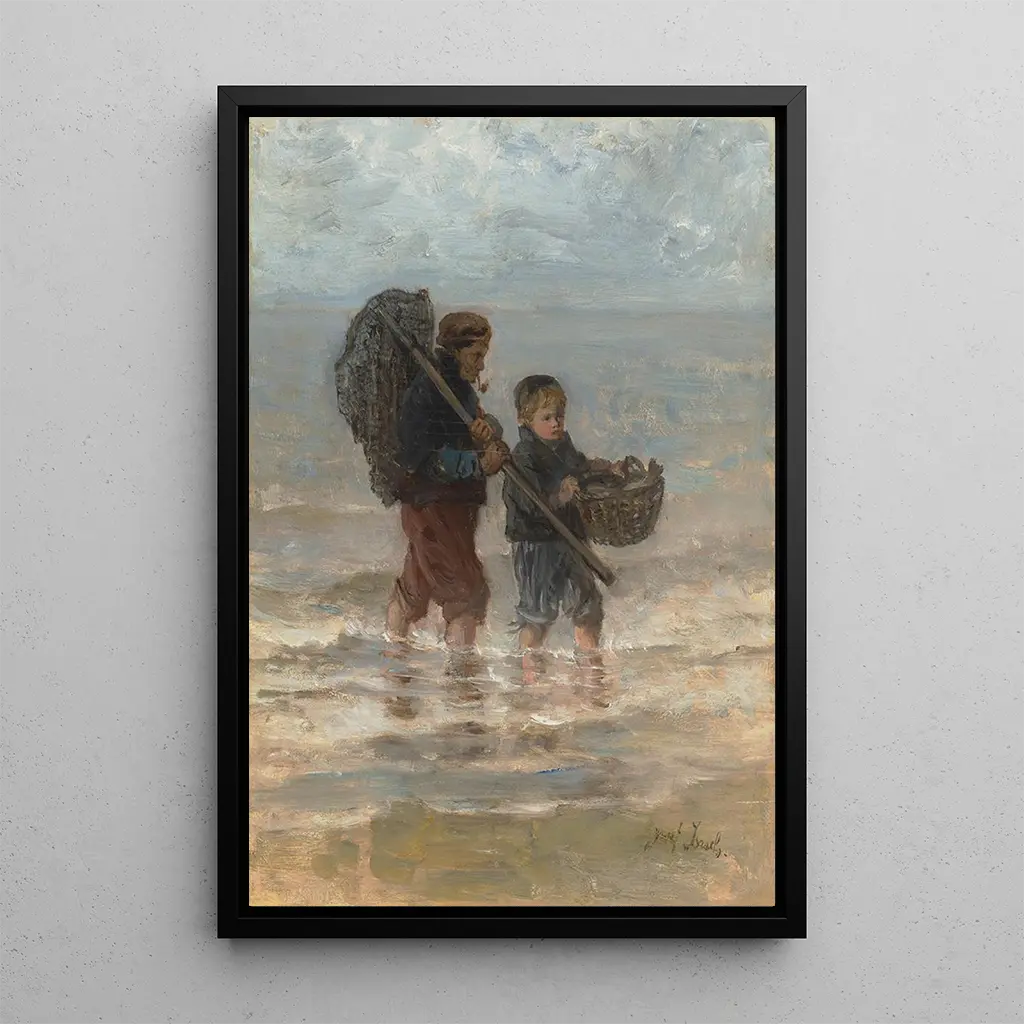 Nederlandse kunstenaar uit de 19e eeuw, Jozef Israëls staat bekend om zijn vermogen om alledaagse scènes met een unieke gevoeligheid vast te leggen. Geïnspireerd door het realisme, wijdde hij zich aan het afbeelden van het leven van gewone mensen, waarbij hij hun waardigheid en menselijkheid benadrukt. Zijn werken, vaak geïnspireerd door de natuur en het landelijke leven, getuigen van een tijd waarin kunst probeerde de werkelijkheid te weerspiegelen in plaats van te verheerlijken. "Deux enfants pataugeend" past perfect binnen deze benadering en viert de eenvoudige geneugten van de kindertijd.