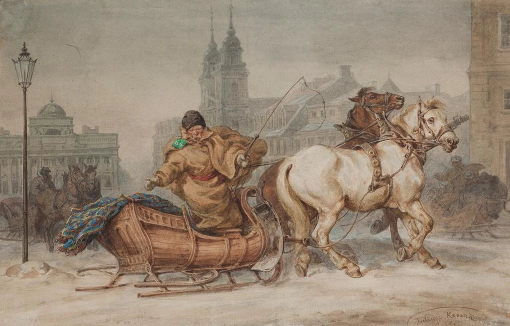 Juliusz Kossak, 19e-eeuwse schilder, is beroemd om zijn weergaven van alledaagse scènes en de Poolse cultuur. Geïnspireerd door het realisme, wist hij momenten uit de geschiedenis en tradities van zijn land te vereeuwigen. Kossak was ook een fervent observator van kostuums en gebruiken, wat hem in staat stelde werken te creëren die rijk zijn aan details en emoties. Zijn werk heeft bijgedragen aan de waardering van de Poolse identiteit door middel van kunst, waardoor hij onmisbaar is in de geschiedenis van de schilderkunst in Polen.