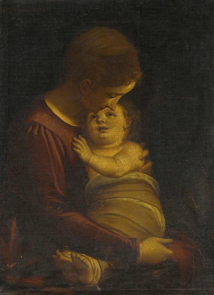Schilderij Maagd met Kind - Luca Cambiaso | Kunstdruk