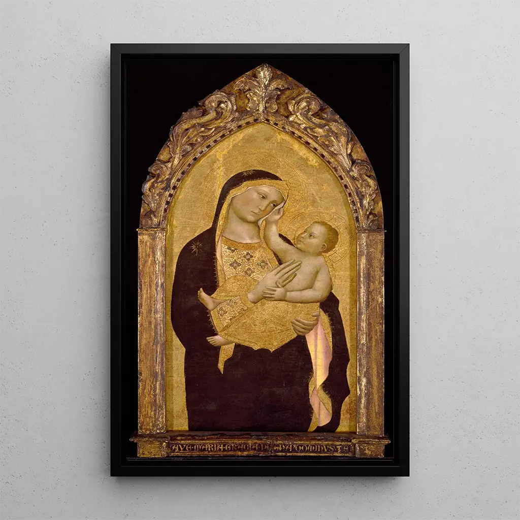 La kunstdruk de la Vierge à l'Enfant, œuvre de Niccolò di Pietro Gerini, évoque une tendresse infinie entre la mère et son enfant. La composition délicate met en avant la douceur des visages, illuminés par des couleurs pastel qui créent une ambiance chaleureuse et apaisante. Les détails raffinés, tels que les drapés et les expressions, témoignent du savoir-faire de l'artiste. Cette œuvre, emblématique de la dévotion chrétienne, invite à une contemplation sereine et à une connexion spirituelle.