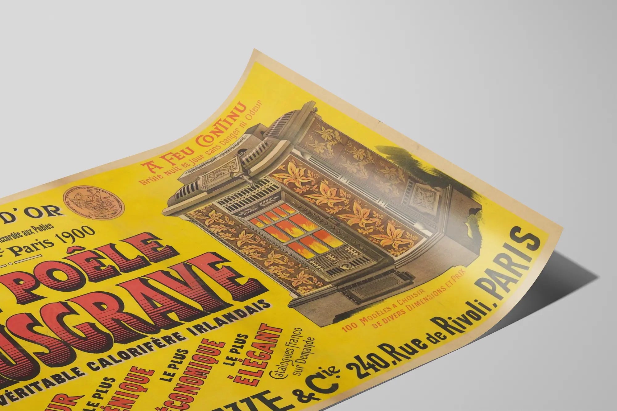Deze vintage reclametegeltje benadrukt de Musgrave-kachel, een Ierse verwarmingstoestel die bekend staat om zijn uitzonderlijke kwaliteiten. Geschikt voor wanddecoratie brengt dit affiche een vleugje authenticiteit en retro charme in elk interieur. Afgedrukt in een oud grafisch stijl, toont het de kachel in detail met elegante bloemmotieven en een zichtbare vlam die warmte en comfort symboliseert. De tekst onderstreept de voordelen van deze kachel: hij wordt beschreven als de beste, hygiënischste, zuinigste en elegantste, allemaal bekroond met een gouden medaille op de wereldtentoonstelling in Parijs in 1900. Dit affiche kan zowel in een woonkamer, keuken of een ruimte voor vintage decoratie worden geplaatst. Het spreekt liefhebbers van antieke objecten en muurversiering aan die op zoek zijn naar een uniek poster, vol karakter en geschiedenis. Door zijn levendige kleuren en opvallende typografische stijl fungeert het ook als een decoratief middelpunt in een kamer. Samengevat biedt deze vintage wanddecoratie een historische knipoog naar een traditioneel huishoudtoestel, terwijl het artistiek ontwerp en de tijdsgebonden reclametekst waardeert, perfect voor verzamelaars en liefhebbers van authentieke decoratie.