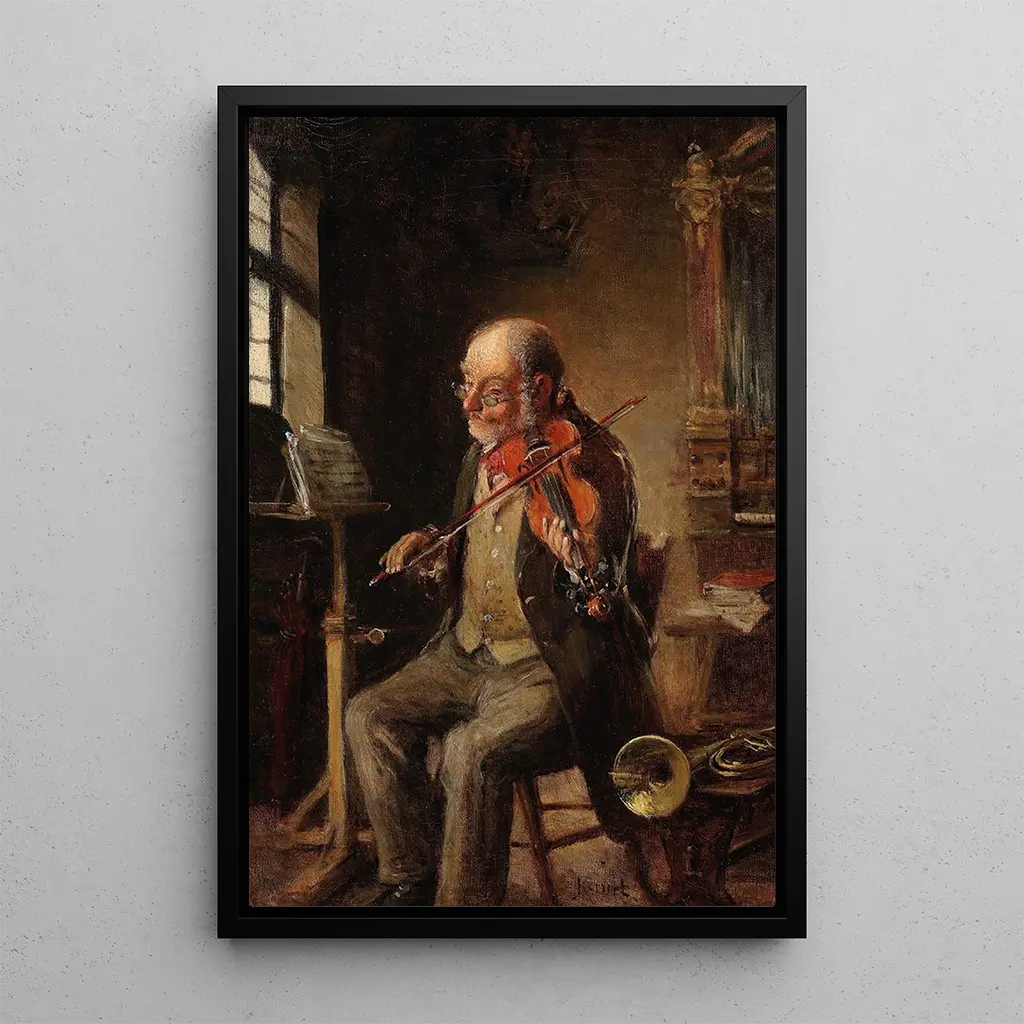 Violist : een ode aan melodie en emotie De kunstdruk "Violist" van Hermann Kern vangt de essentie van muziek door middel van een levendige en emotionele voorstelling. De warme en rijke kleuren, die tinten van rood en goud mengen, omhullen de musicus in een bijna mystieke sfeer. De techniek van de kunstenaar, die realisme combineert met een vleugje impressionisme, laat de passie van de violist voelen, wiens gezicht een diepe concentratie uitdrukt. Elke penseelstreek lijkt te vibreren op het ritme van de muziek, en nodigt de kijker uit om zich onder te dompelen in deze intieme en boeiende scène. Hermann Kern, een Oostenrijkse kunstenaar actief in het begin van de 20e eeuw, staat bekend om zijn portretten en scènes uit het dagelijks leven. Geïnspireerd door de artistieke beweging van zijn tijd, wist hij elementen van het realisme te integreren terwijl hij meer persoonlijke en emotionele thema's verkende. Zijn werk weerspiegelt een periode waarin de kunst zich losmaakte van strikte conventies, wat meer individuele expressie mogelijk maakte. "Violist" past binnen deze benadering, en illustreert niet alleen het talent van Kern, maar ook het belang van muziek in de Europese cultuur van die tijd. Een decoratief stuk met vele troeven De kunstdruk van de "Violist" is een ideale keuze om je interieur te verrijken, of het nu in een woonkamer, kantoor of slaapkamer is. De kwaliteit van de afdruk en de trouw aan de details van het originele werk maken er een boeiend kunstwerk van dat de aandacht trekt en gesprekken uitlokt. Dit schilderij, met zijn warme sfeer en emotionele boodschap, brengt een vleugje elegantie en verfijning in elke ruimte. Door te kiezen voor deze doek, kies je voor een decoratie die esthetiek en geschiedenis combineert, en tegelijkertijd de schoonheid van muziek viert door middel van kunst.