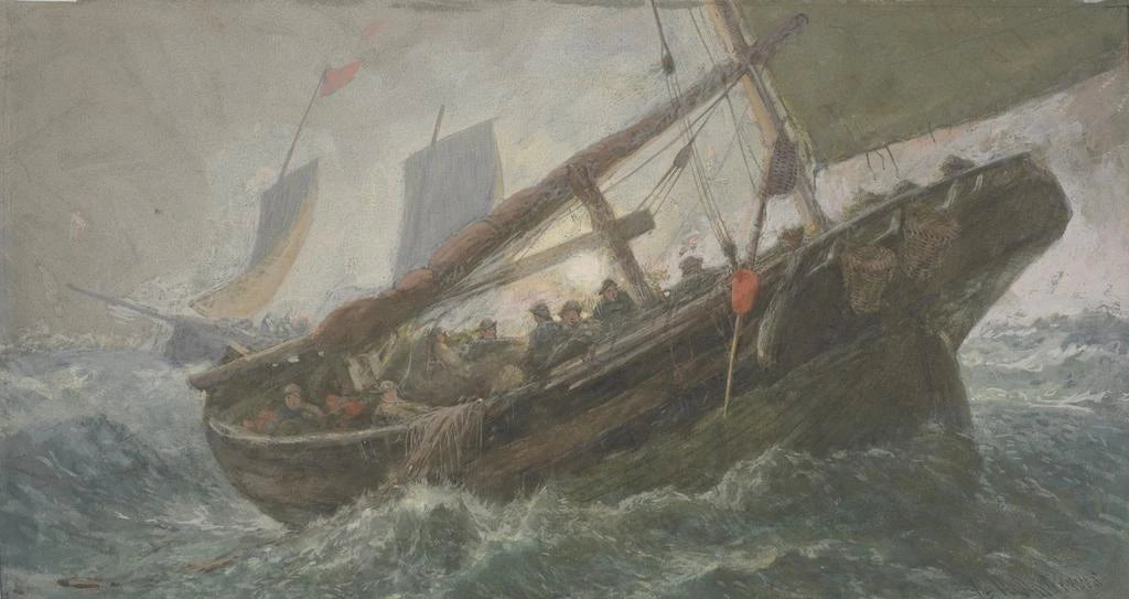 Zeilboot op zee: een ode aan het maritieme leven De kunstdruk "Zeilboot op zee" van George Henry Andrews roept een levendige en dynamische scène op van het leven op het water. De diepe blauwtinten en de nuances van groen vermengen zich harmonieus, waardoor een sfeer ontstaat die zowel rustgevend als levendig is. De techniek van de kunstenaar, gekenmerkt door vloeiende penseelstreken, brengt de golven tot leven die lijken te dansen rond de boot. Deze, stevig verankerd in zijn omgeving, wordt het symbool van een maritiem avontuur en nodigt de kijker uit om de zeebries en de geur van zout te voelen. Het licht speelt een cruciale rol door de hemel te verlichten en de details van de kunstdruk te accentueren, waardoor deze boeiende en levendige reproductie ontstaat. George Henry Andrews: een meester van maritiem realisme George Henry Andrews, actief in de 19e eeuw, staat bekend om zijn werken die de schoonheid en de ruigheid van het maritieme leven vastleggen. Geïnspireerd door de realistische beweging, streeft hij ernaar de zee en haar activiteiten met verbluffende precisie te weergeven. Zijn kunstdrukken, vaak geïnspireerd door zijn reizen langs de Britse kusten, getuigen van een diepe bewondering voor de natuur en de mensen die haar exploiteren. Andrews heeft naam gemaakt in de kunstwereld, en zijn werk heeft vele hedendaagse kunstenaars beïnvloed. Door elementen van het dagelijks leven van vissers te integreren, heeft hij een essentieel aspect van de maritieme cultuur van zijn tijd weten te vereeuwigen. Een decoratief stuk met vele voordelen De reproductie van de "Zeilboot op zee" is een ideaal decoratief stuk voor diverse ruimtes, of het nu in een woonkamer, kantoor of slaapkamer is. De kwaliteit van de afdruk en de trouw aan de oorspronkelijke kleuren maken het een aantrekkelijke keuze voor wie een vleugje maritieme elegantie in hun interieur wil brengen. Deze kunstdruk, met zijn rustgevende sfeer en boeiende esthetiek, trekt de aandacht en wekt nieuwsgierigheid. Door voor dit doek te kiezen, kiest u voor een kunstwerk dat niet alleen uw ruimte verfraait, maar ook een verhaal vertelt, dat van de mannen en vrouwen die in harmonie met de zee leven.