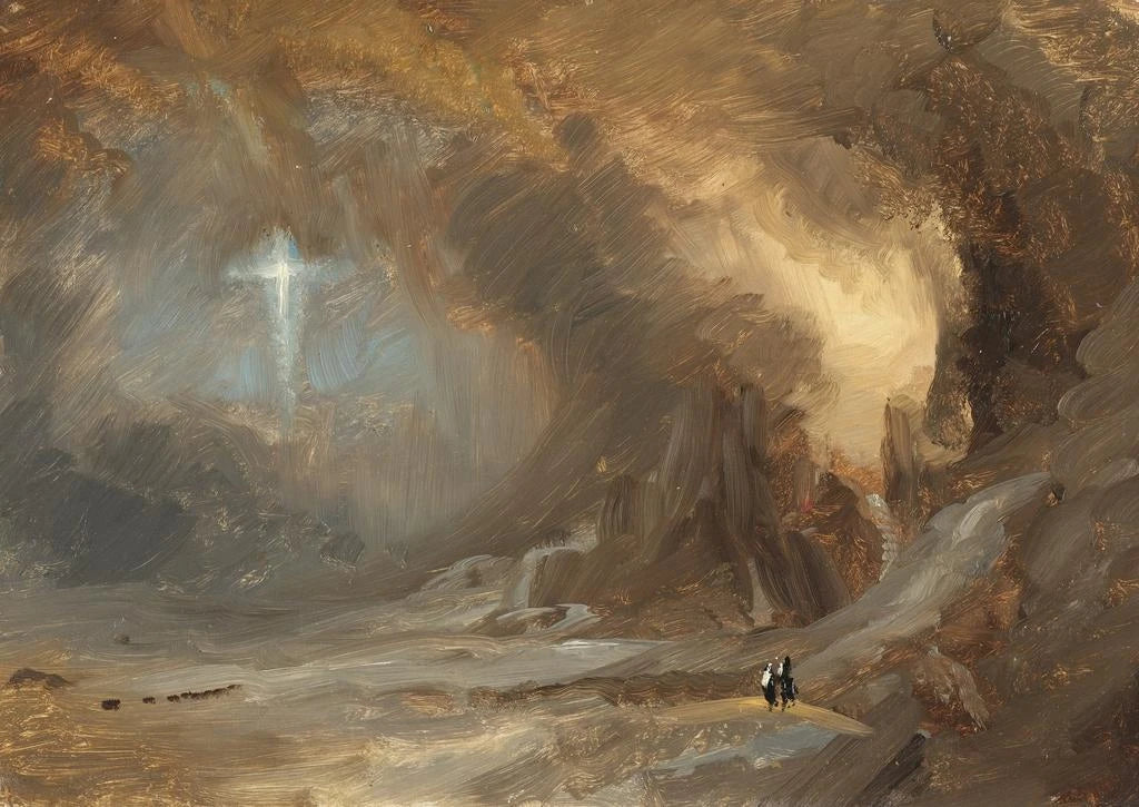 Frederic Edwin Church, een iconische figuur van de Hudson River School, wist het landschap te verbinden met een spirituele dimensie. Actief in de 19e eeuw, werd hij beïnvloed door reizen in Zuid-Amerika en de romantische filosofie, met als doel de sublieme schoonheid van de natuur vast te leggen. Zijn werken, vaak grootschalig, weerspiegelen een zoektocht naar transcendentie en een bewondering voor de goddelijke schepping. "Vision de la Croix" past in deze lijn en getuigt van het belang van de natuur in de spiritualiteit en kunst van zijn tijd.