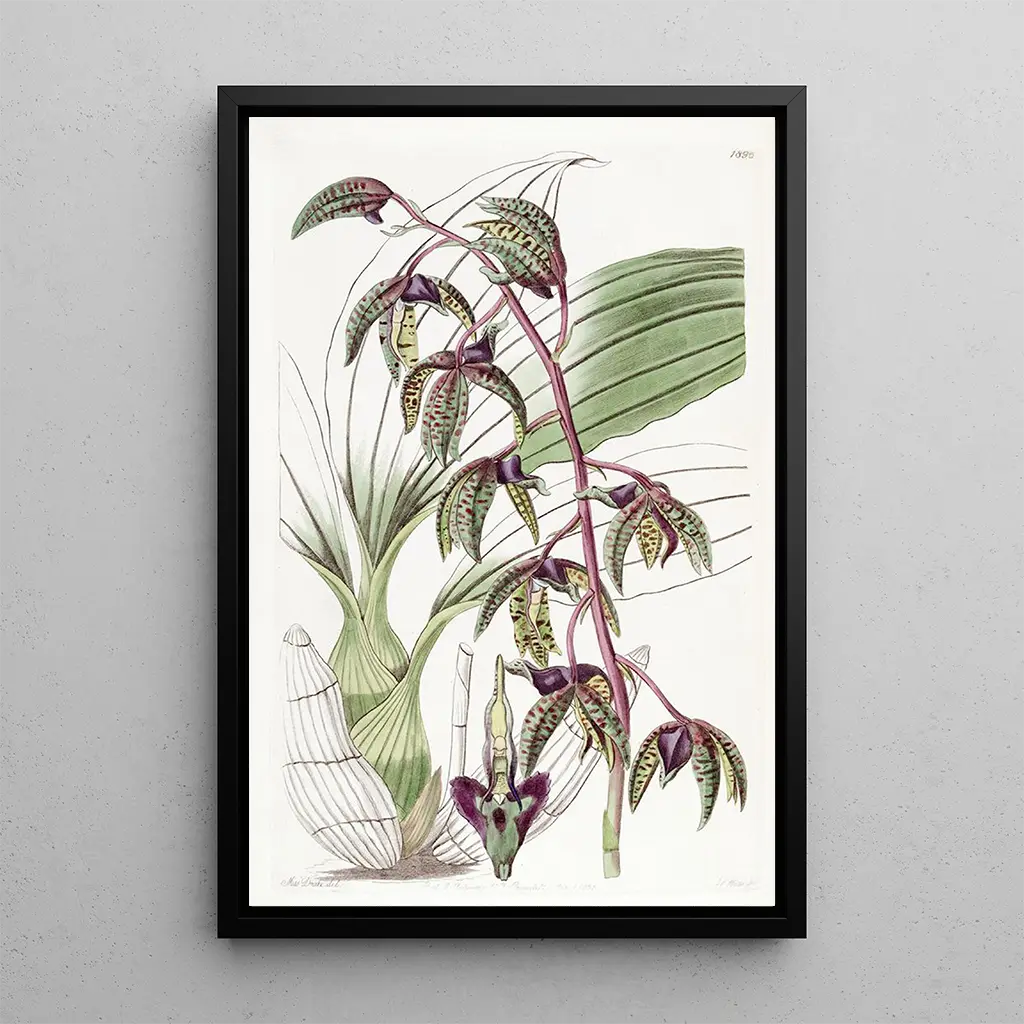 Le tableau "Flywort à lèvre triangulaire" de Sydenham Edwards est une véritable ode à la beauté botanique. Cette œuvre captivante se distingue par ses couleurs délicates, oscillant entre des verts profonds et des touches de blanc éclatant. La technique de l’aquarelle, utilisée avec finesse, permet de rendre la texture des feuilles et la transparence des pétales. L’atmosphère qui se dégage de cette toile est à la fois apaisante et inspirante, invitant le spectateur à plonger dans l’univers fascinant des plantes. Chaque détail semble être soigneusement observé, témoignant d'une passion pour la botanique et d'une volonté de capturer l'essence même de la nature.