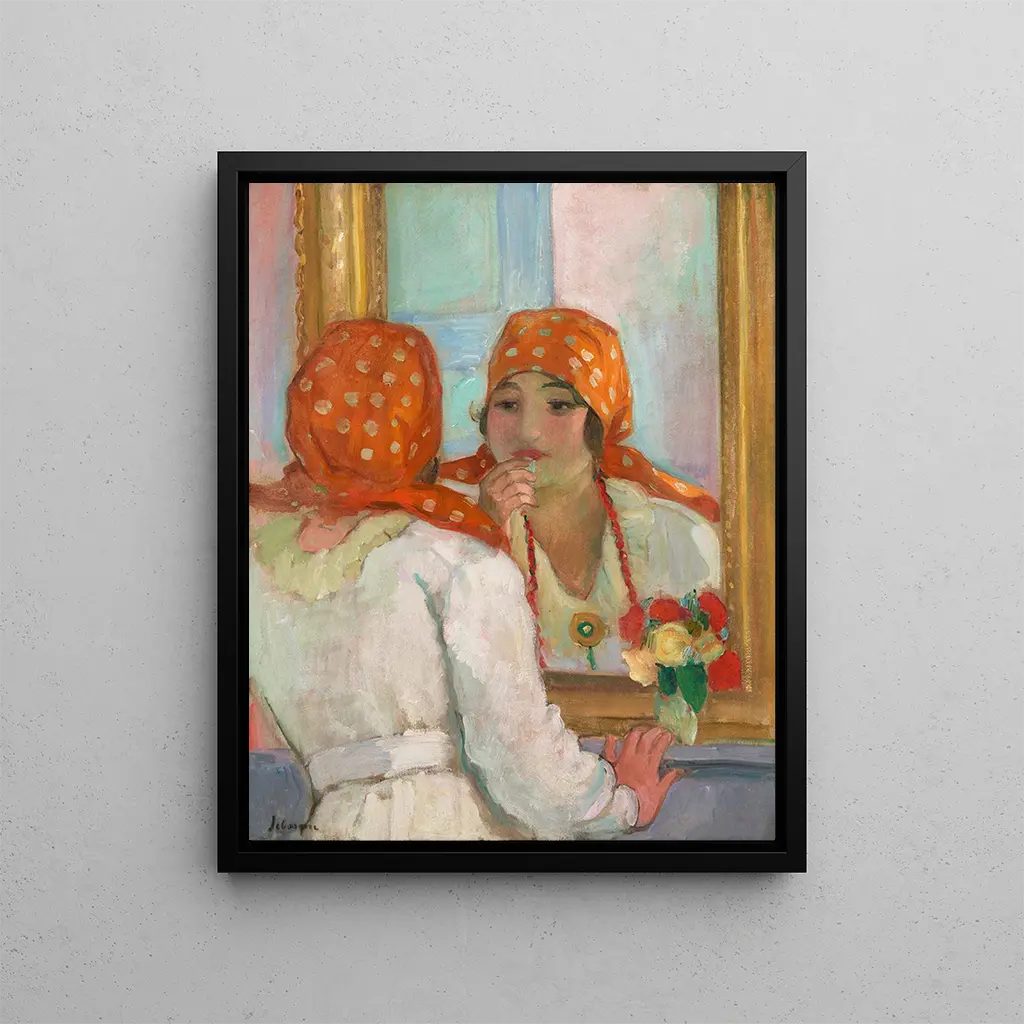 Henri Lebasque, Franse schilder, is beroemd om zijn voorstellingen van alledaagse scènes en levendige portretten. 'Voor de spiegel' is een werk dat de essentie van vrouwelijkheid vastlegt door de afbeelding van een vrouw die in een spiegel kijkt. Het licht dat weerkaatst op de oppervlakken en de felle kleuren die Lebasque gebruikt, creëren een sfeer die zowel intiem als vrolijk is. Dit schilderij, gemaakt aan het begin van de 20e eeuw, onthult niet alleen het talent van de kunstenaar om schoonheid vast te leggen, maar ook zijn vermogen om emoties op te roepen door middel van compositie en kleur. In de huidige context van interieurdecoratie kan dit werk een vleugje elegantie en verfijning toevoegen aan elke ruimte. Kunstliefhebbers zullen genieten van de manier waarop Lebasque speelt met licht en schaduw, wat een boeiende visuele ervaring biedt. Een uitnodiging om dit werk te ontdekken, is te vinden op Artem Legrand.